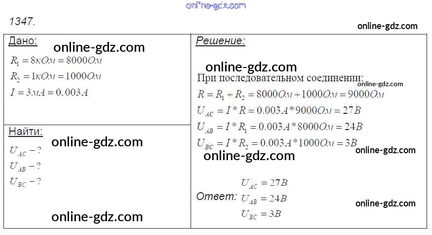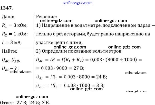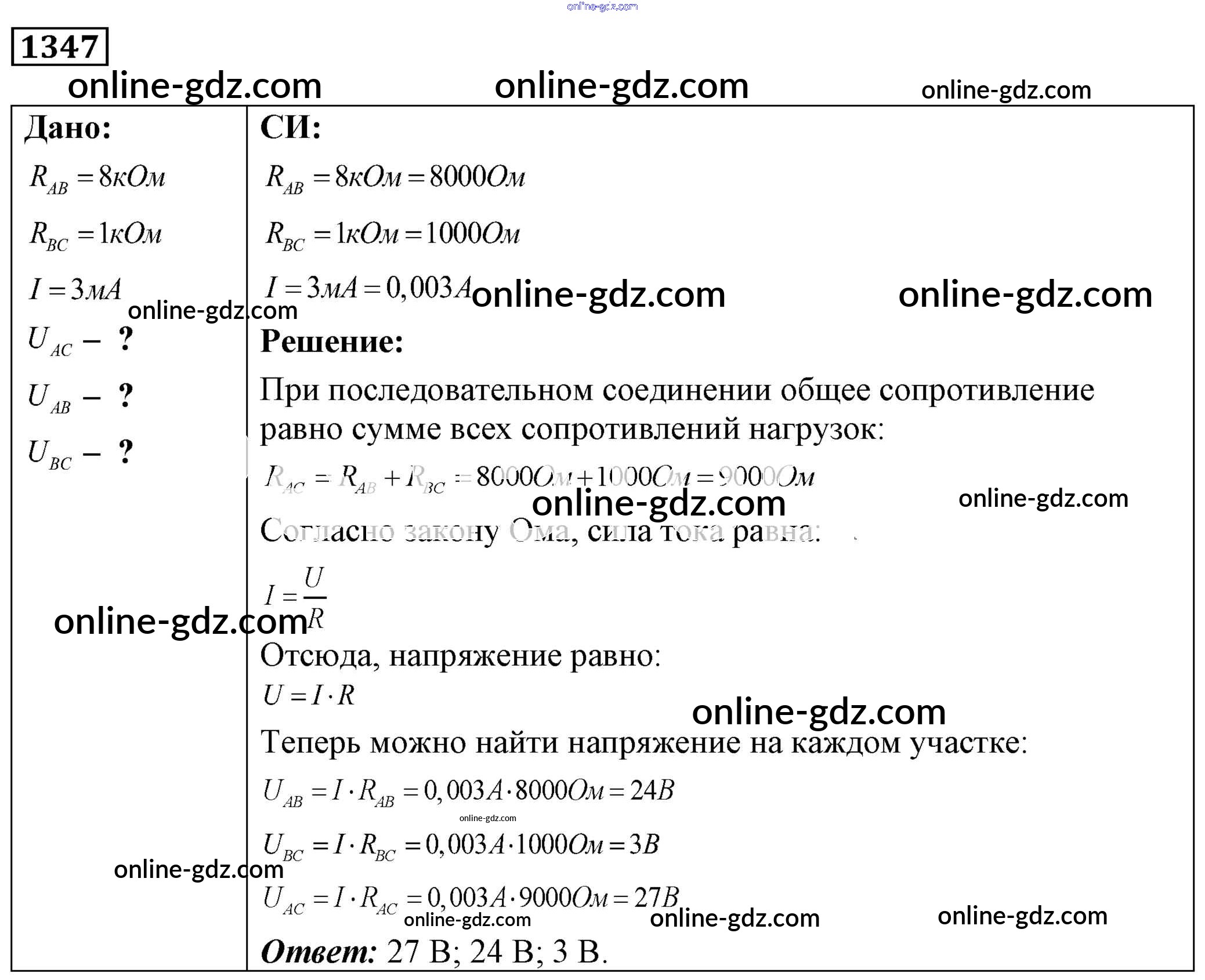 Готовые домашние задания по Физике за 7, 8, 9 класс Сборник задач Лукашик, Иванова 2011 - Задания 1347