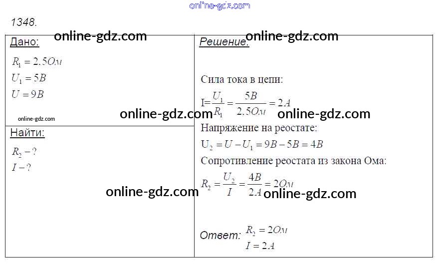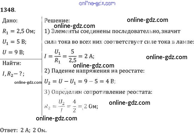 Готовые домашние задания по Физике за 7, 8, 9 класс Сборник задач Лукашик, Иванова 2011 - Задания 1348