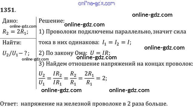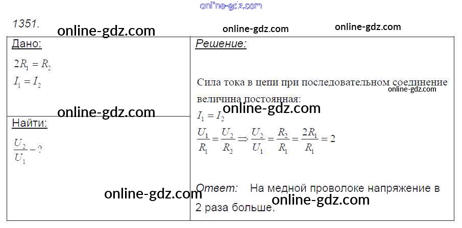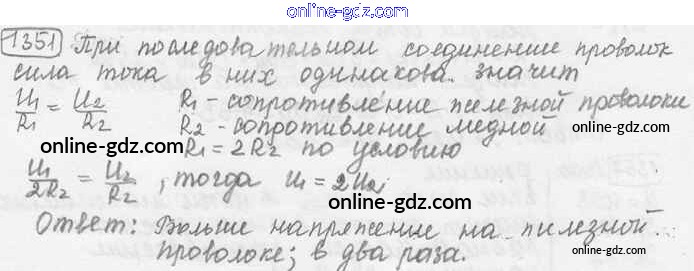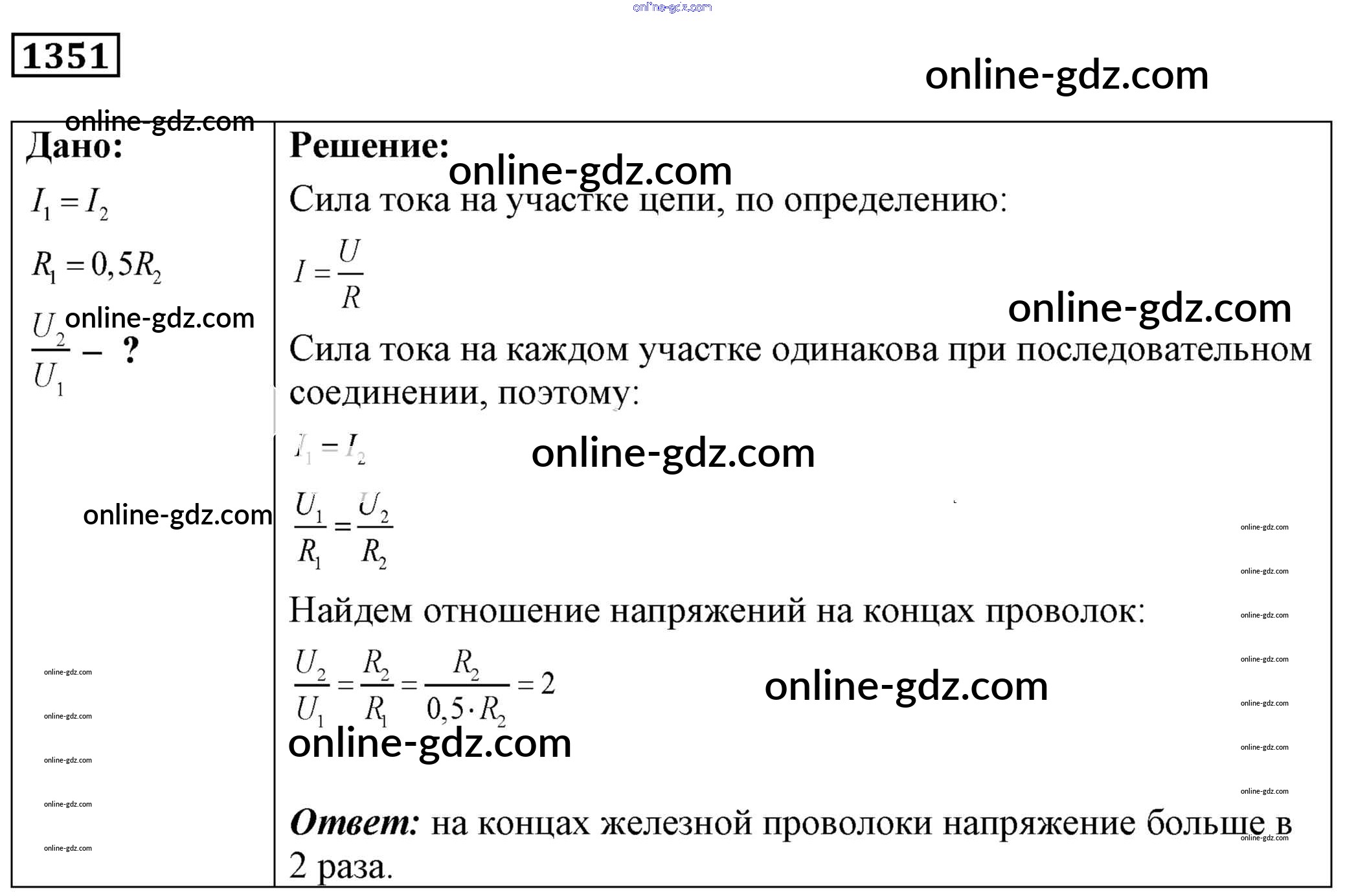Готовые домашние задания по Физике за 7, 8, 9 класс Сборник задач Лукашик, Иванова 2011 - Задания 1351