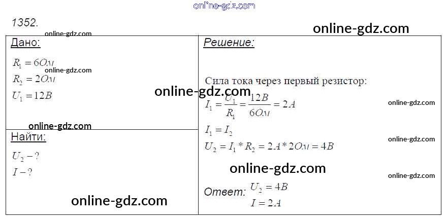 Готовые домашние задания по Физике за 7, 8, 9 класс Сборник задач Лукашик, Иванова 2011 - Задания 1352