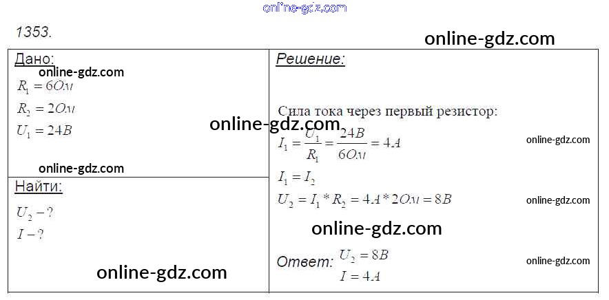 Готовые домашние задания по Физике за 7, 8, 9 класс Сборник задач Лукашик, Иванова 2011 - Задания 1353