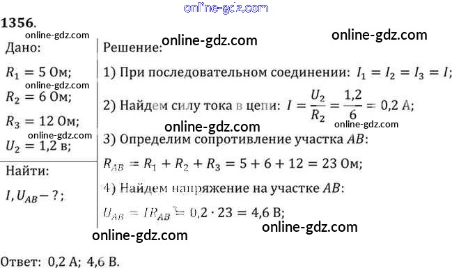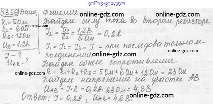 Готовые домашние задания по Физике за 7, 8, 9 класс Сборник задач Лукашик, Иванова 2011 - Задания 1356
