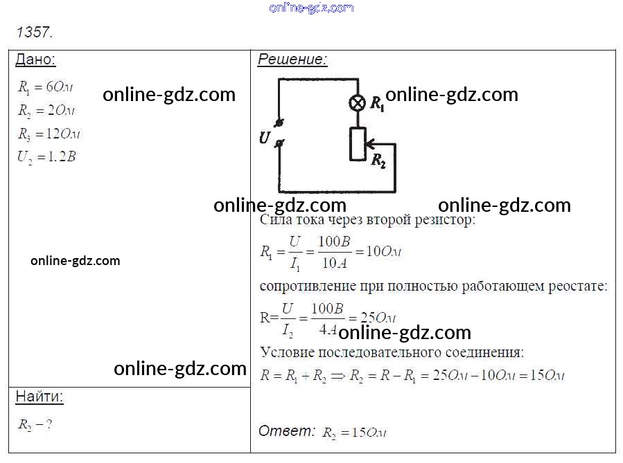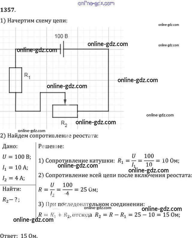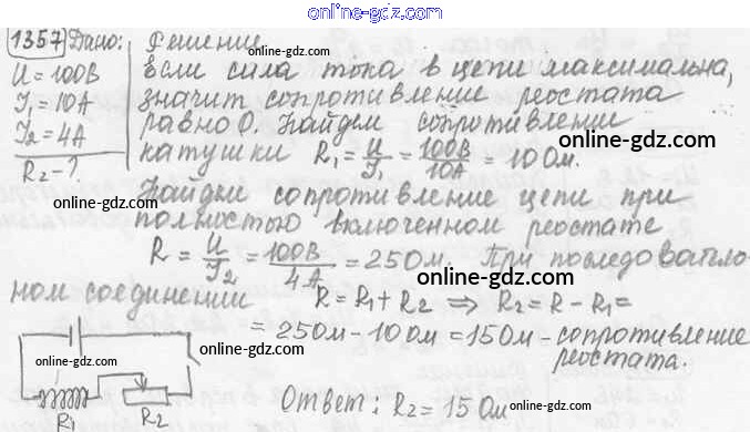 Готовые домашние задания по Физике за 7, 8, 9 класс Сборник задач Лукашик, Иванова 2011 - Задания 1357
