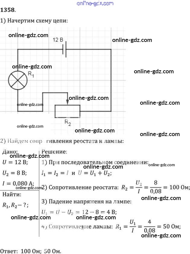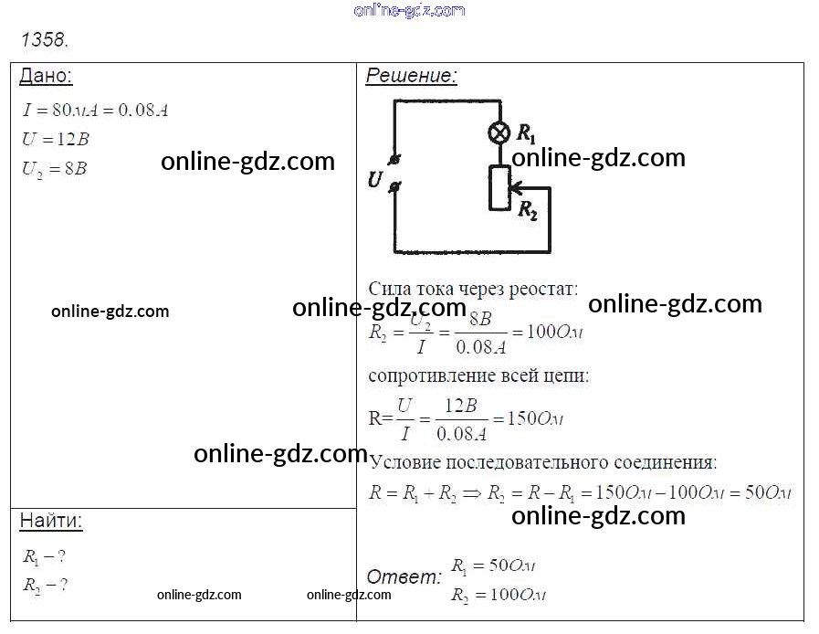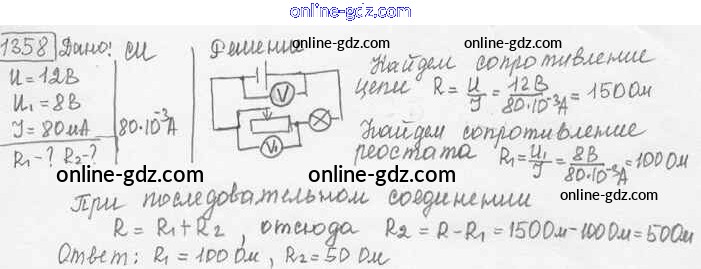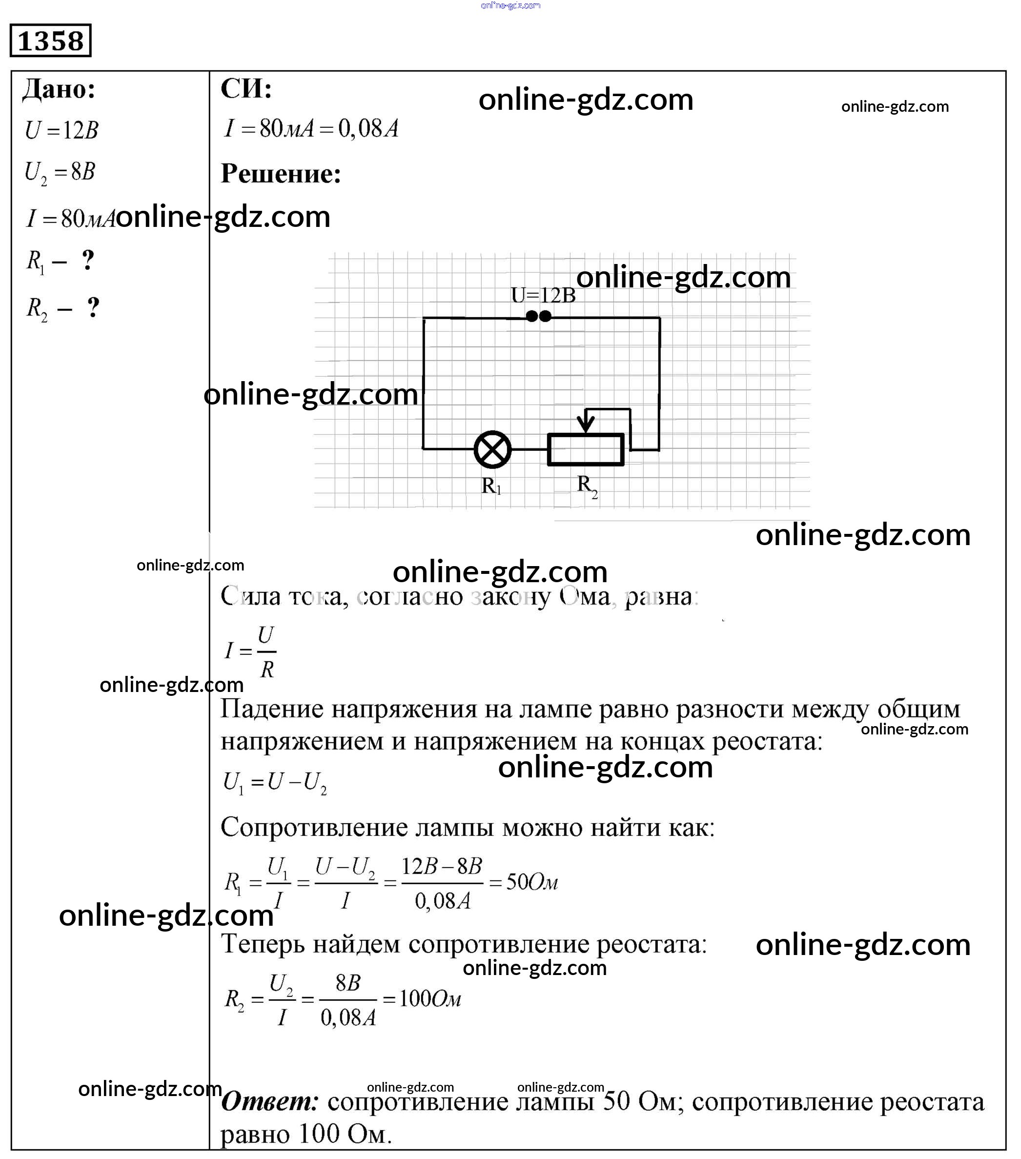 Готовые домашние задания по Физике за 7, 8, 9 класс Сборник задач Лукашик, Иванова 2011 - Задания 1358
