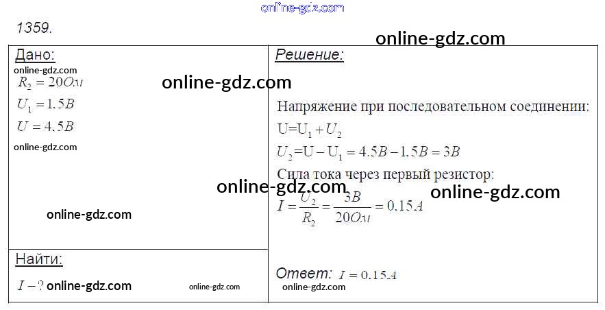 Готовые домашние задания по Физике за 7, 8, 9 класс Сборник задач Лукашик, Иванова 2011 - Задания 1359