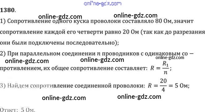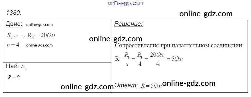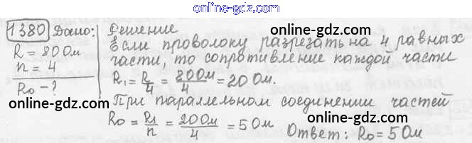 Готовые домашние задания по Физике за 7, 8, 9 класс Сборник задач Лукашик, Иванова 2011 - Задания 1380