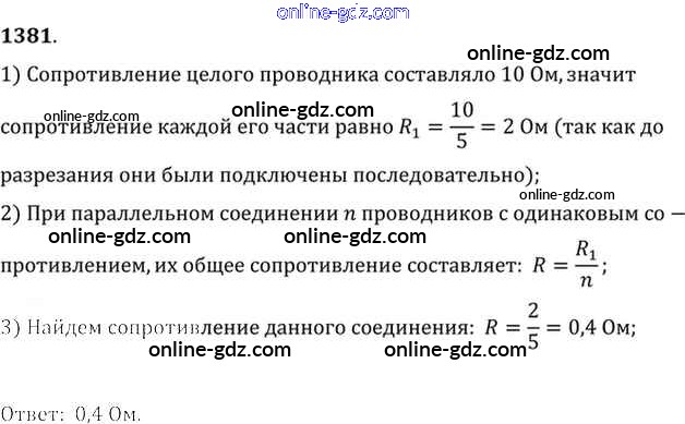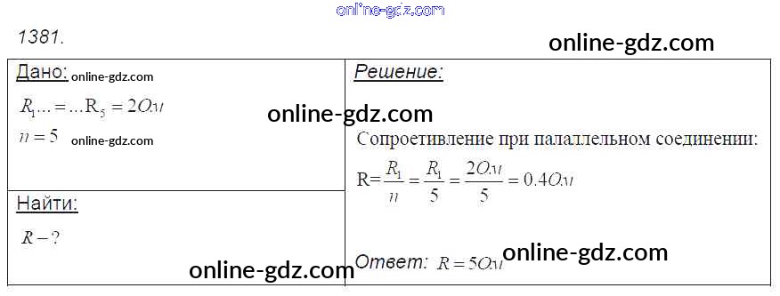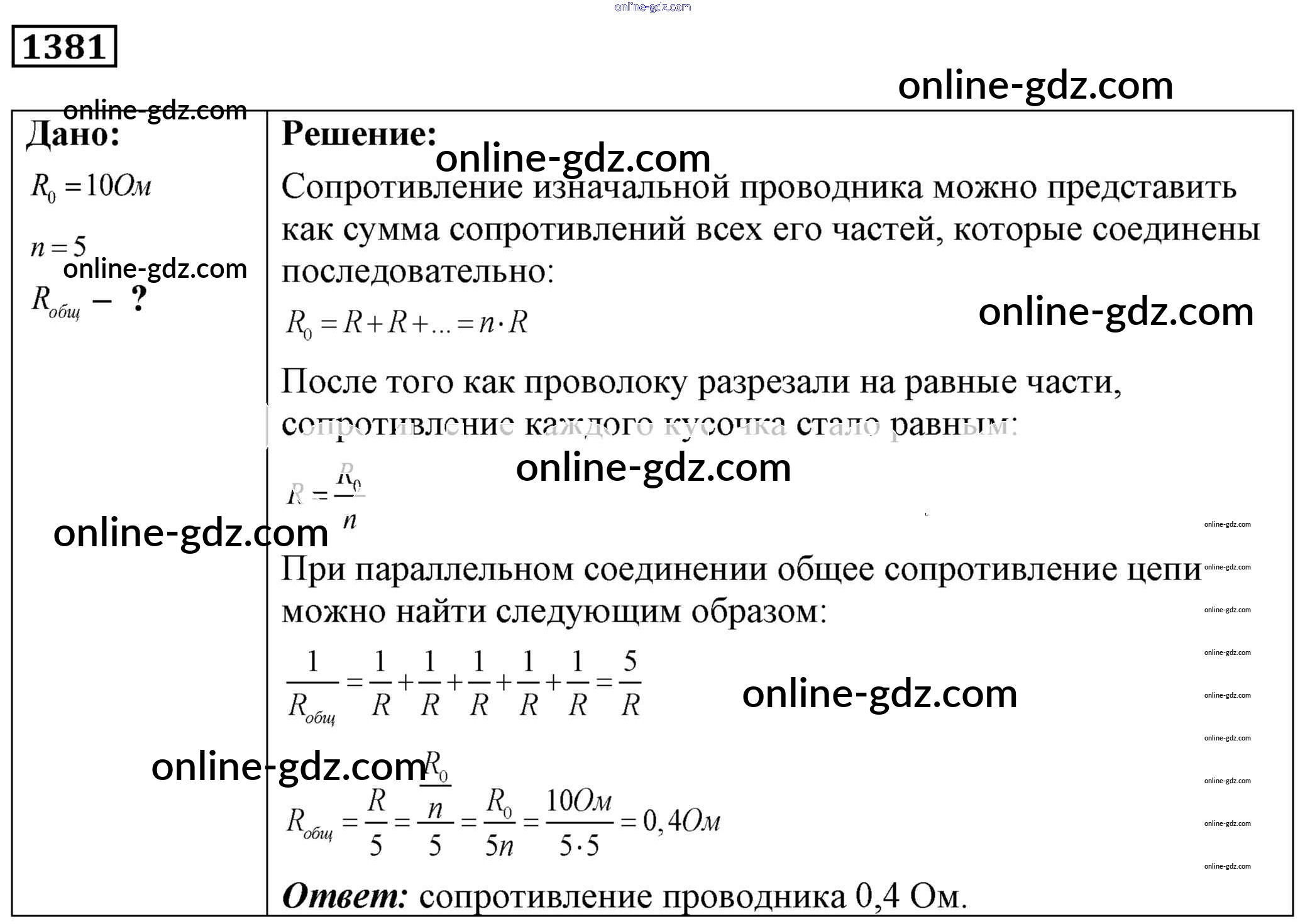 Готовые домашние задания по Физике за 7, 8, 9 класс Сборник задач Лукашик, Иванова 2011 - Задания 1381