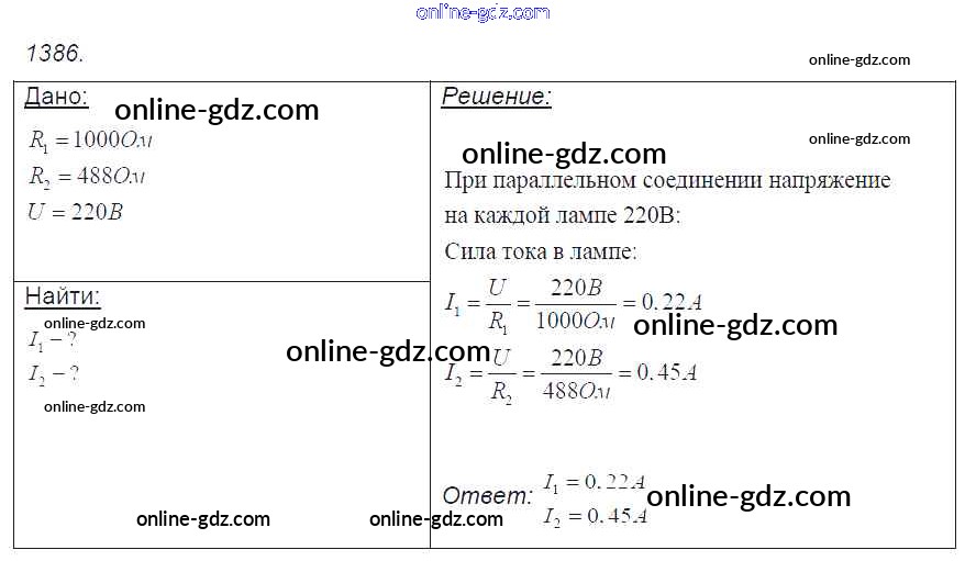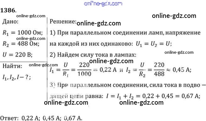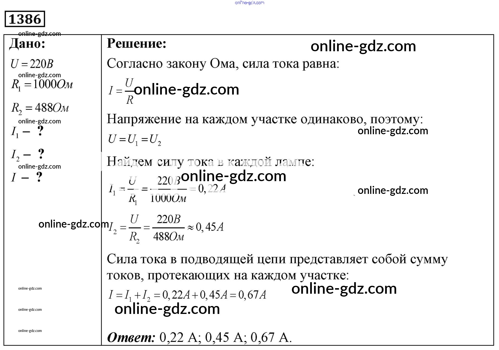 Готовые домашние задания по Физике за 7, 8, 9 класс Сборник задач Лукашик, Иванова 2011 - Задания 1386