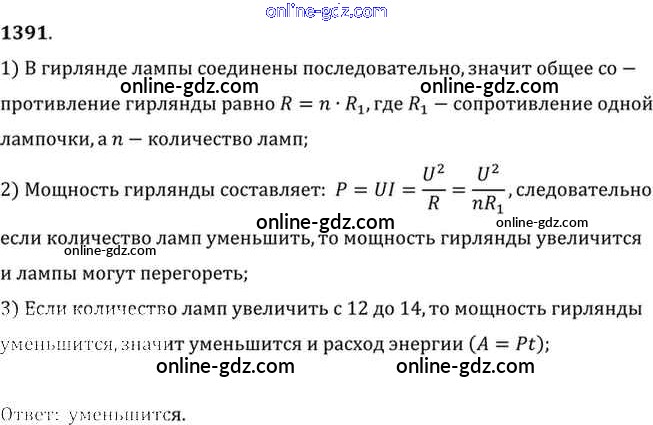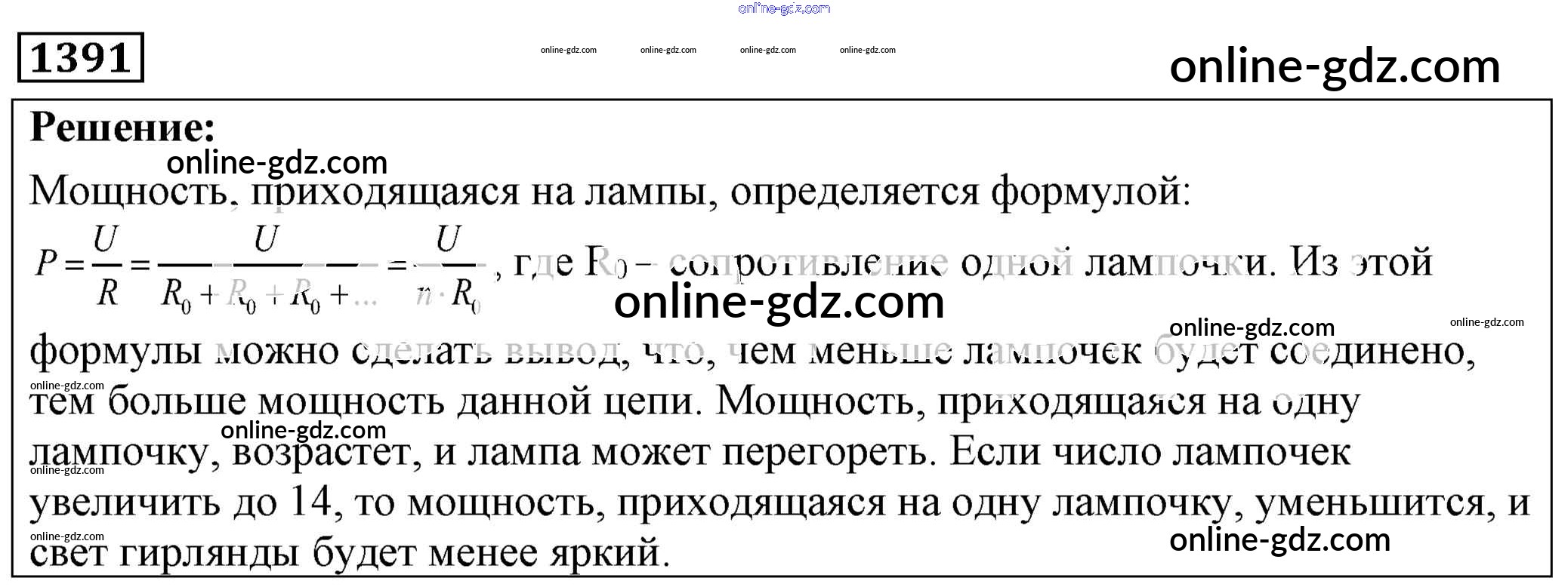 Готовые домашние задания по Физике за 7, 8, 9 класс Сборник задач Лукашик, Иванова 2011 - Задания 1391