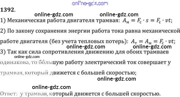 Готовые домашние задания по Физике за 7, 8, 9 класс Сборник задач Лукашик, Иванова 2011 - Задания 1392