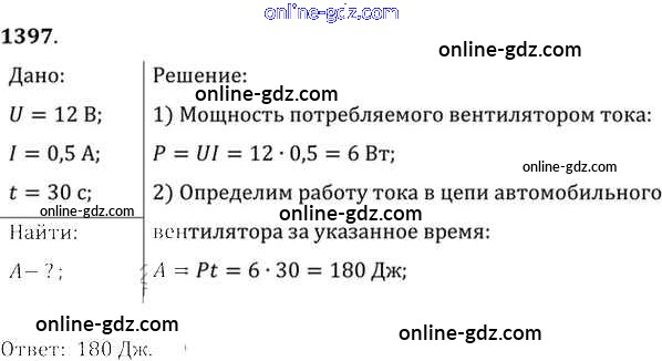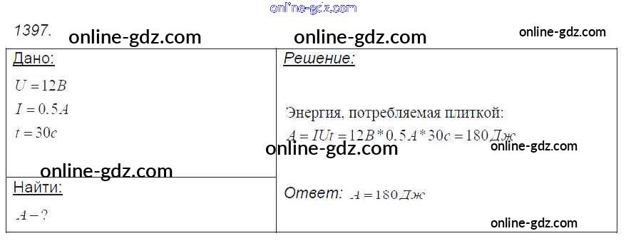 Готовые домашние задания по Физике за 7, 8, 9 класс Сборник задач Лукашик, Иванова 2011 - Задания 1397
