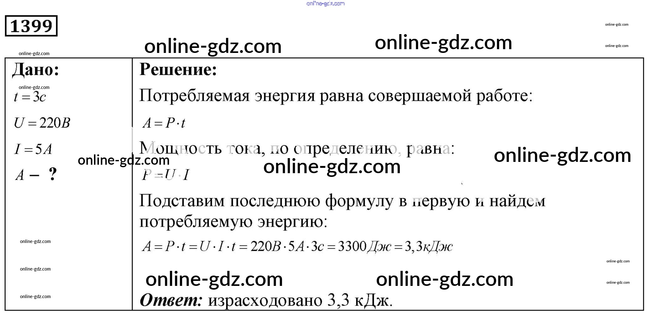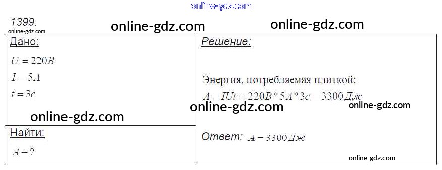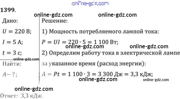 Готовые домашние задания по Физике за 7, 8, 9 класс Сборник задач Лукашик, Иванова 2011 - Задания 1399