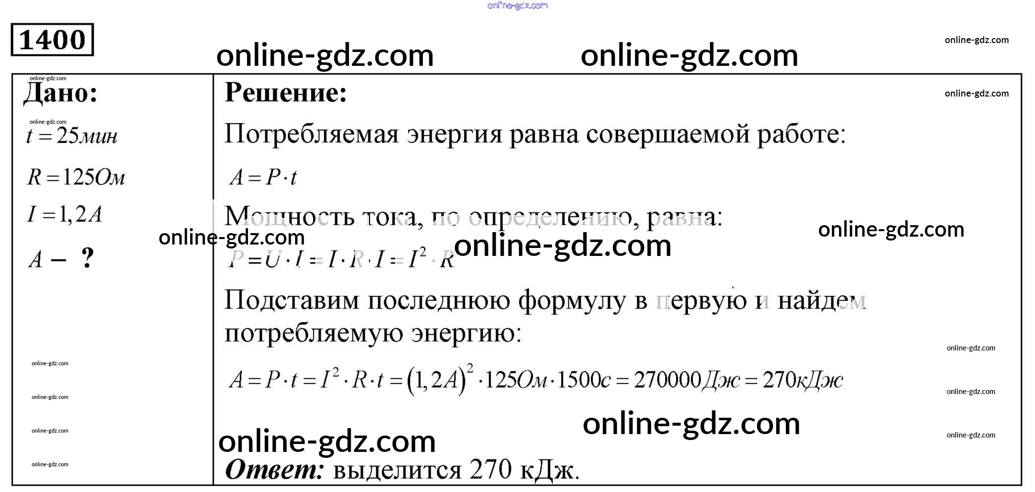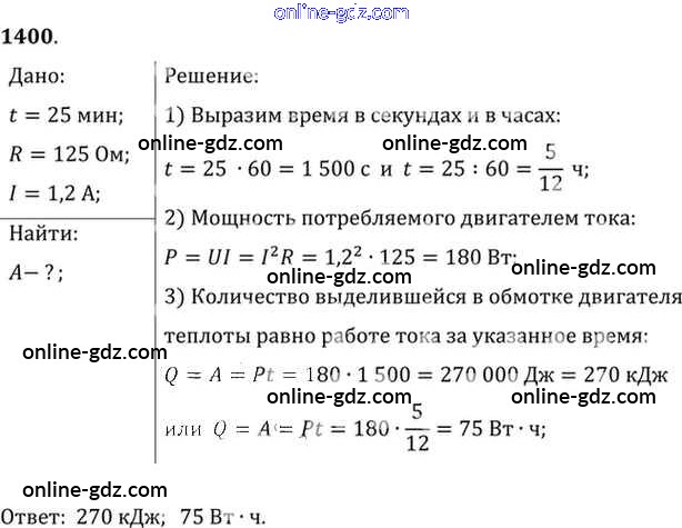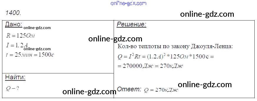 Готовые домашние задания по Физике за 7, 8, 9 класс Сборник задач Лукашик, Иванова 2011 - Задания 1400