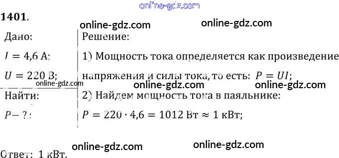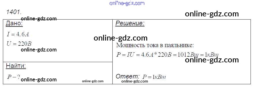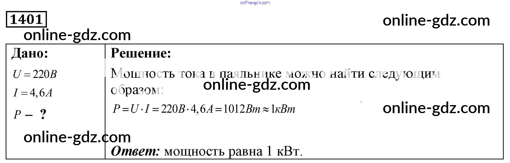 Готовые домашние задания по Физике за 7, 8, 9 класс Сборник задач Лукашик, Иванова 2011 - Задания 1401