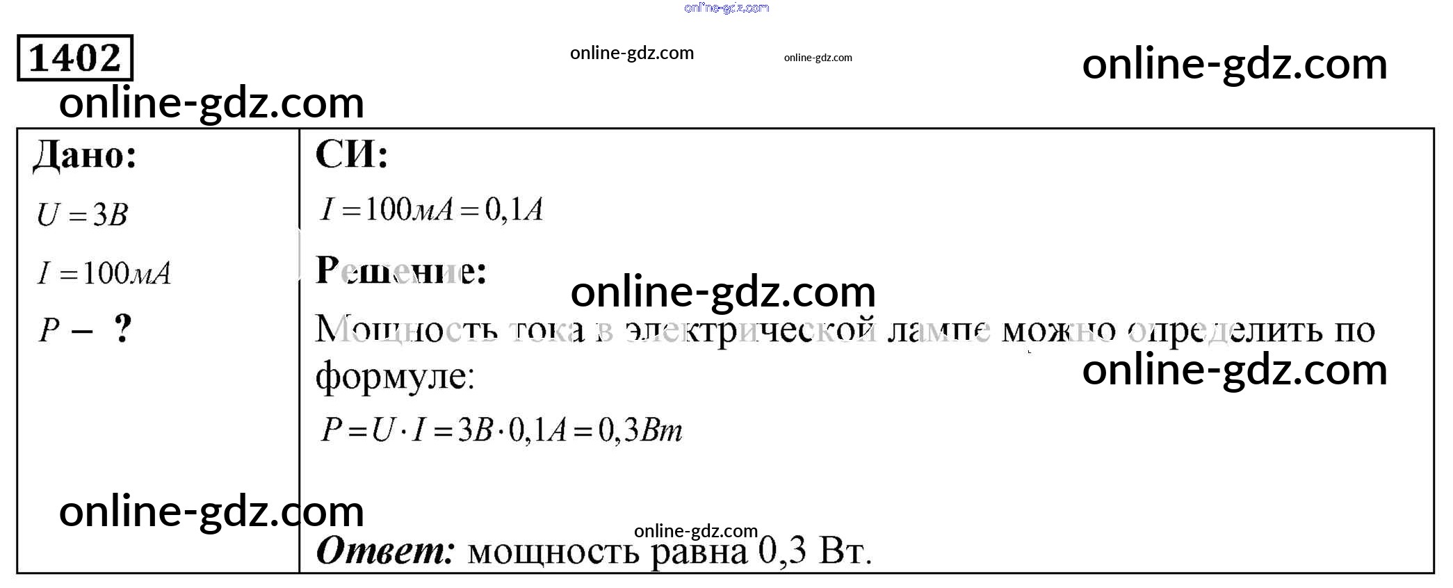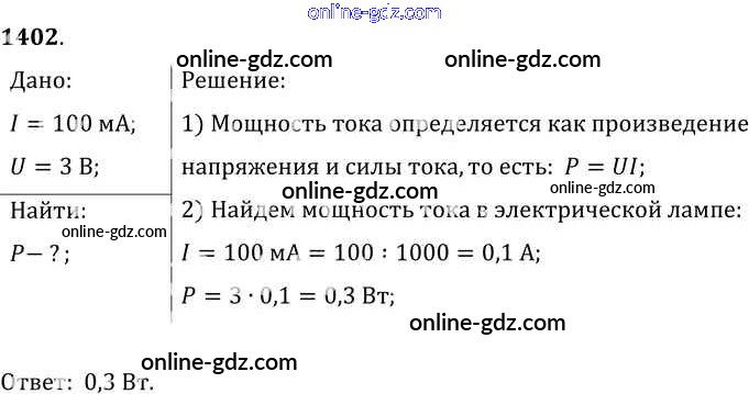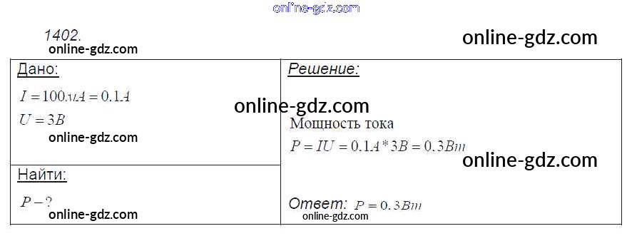 Готовые домашние задания по Физике за 7, 8, 9 класс Сборник задач Лукашик, Иванова 2011 - Задания 1402
