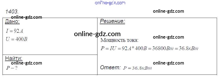 Готовые домашние задания по Физике за 7, 8, 9 класс Сборник задач Лукашик, Иванова 2011 - Задания 1403