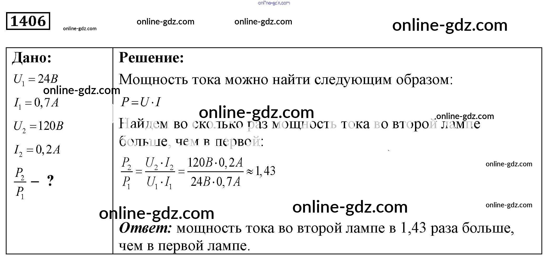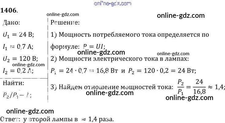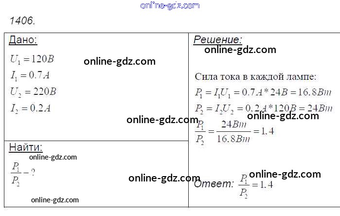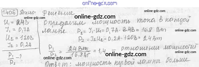 Готовые домашние задания по Физике за 7, 8, 9 класс Сборник задач Лукашик, Иванова 2011 - Задания 1406