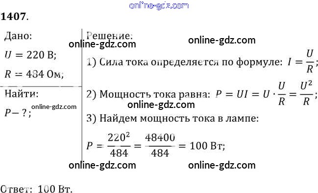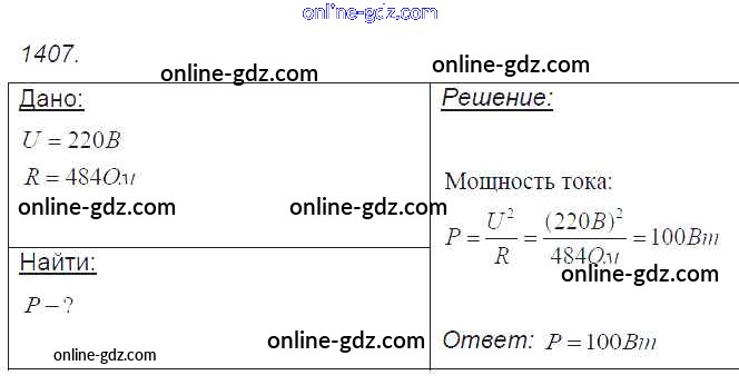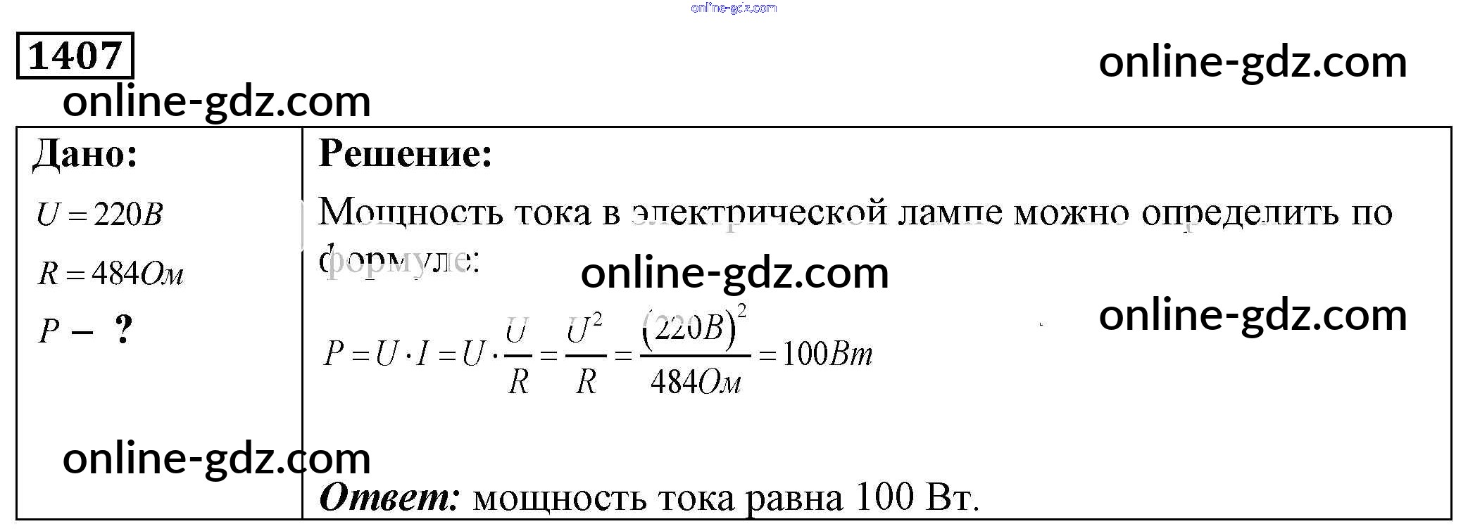 Готовые домашние задания по Физике за 7, 8, 9 класс Сборник задач Лукашик, Иванова 2011 - Задания 1407