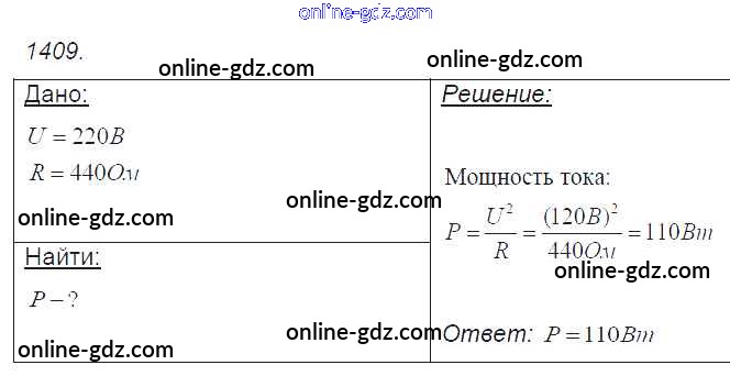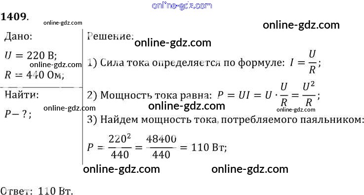 Готовые домашние задания по Физике за 7, 8, 9 класс Сборник задач Лукашик, Иванова 2011 - Задания 1409
