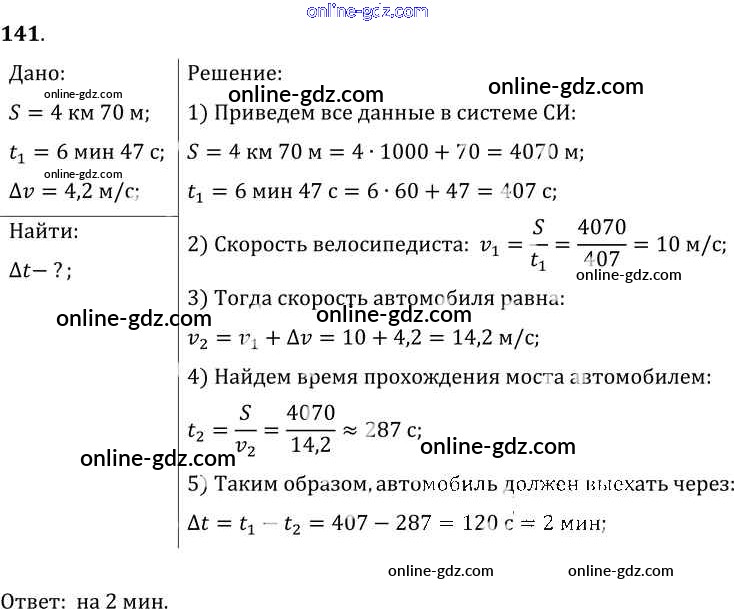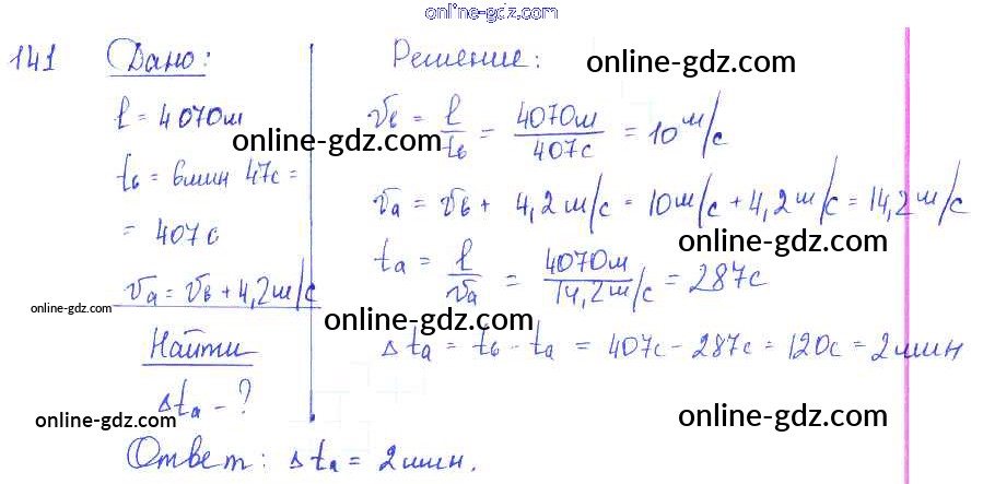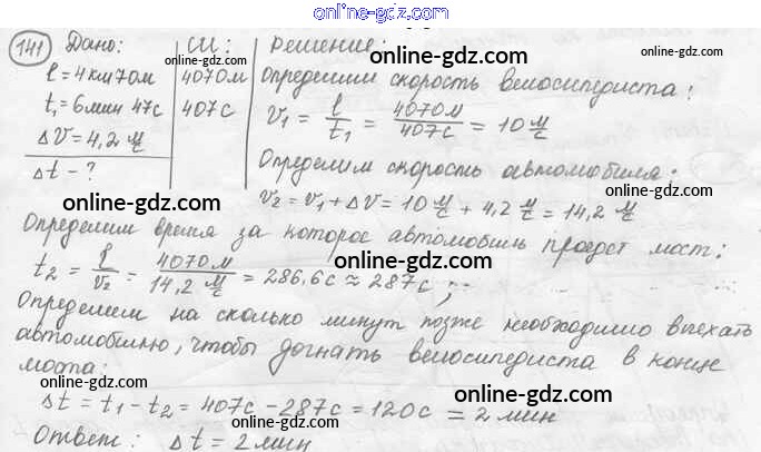 Готовые домашние задания по Физике за 7, 8, 9 класс Сборник задач Лукашик, Иванова 2011 - Задания 141