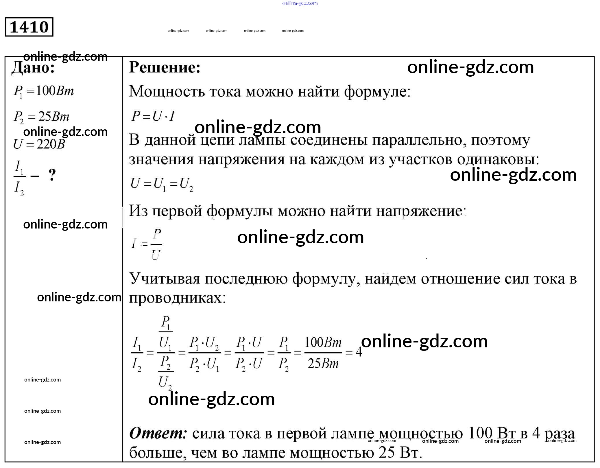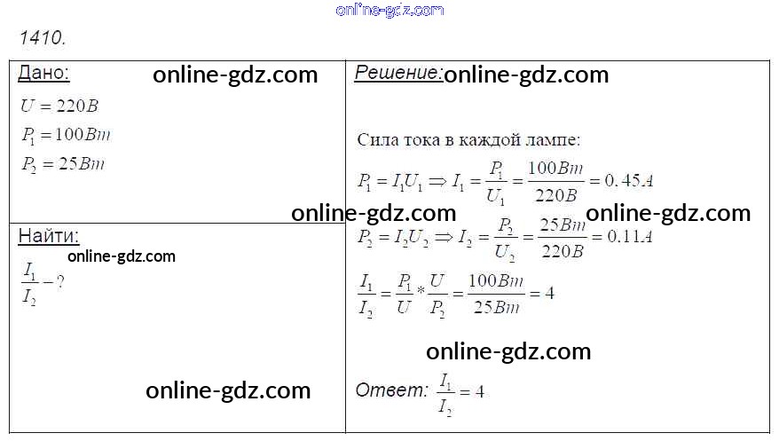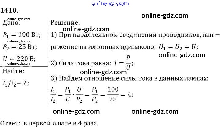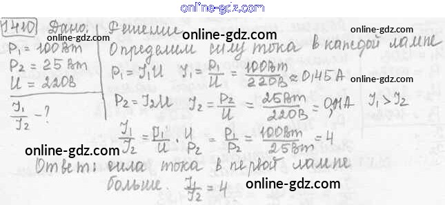 Готовые домашние задания по Физике за 7, 8, 9 класс Сборник задач Лукашик, Иванова 2011 - Задания 1410