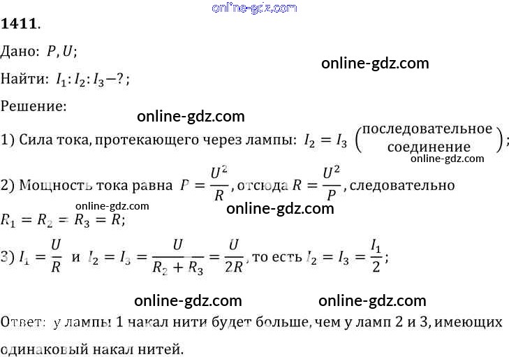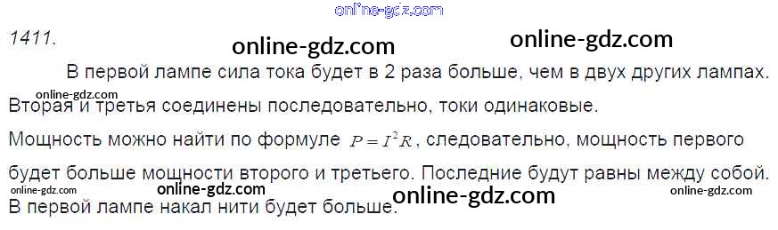 Готовые домашние задания по Физике за 7, 8, 9 класс Сборник задач Лукашик, Иванова 2011 - Задания 1411