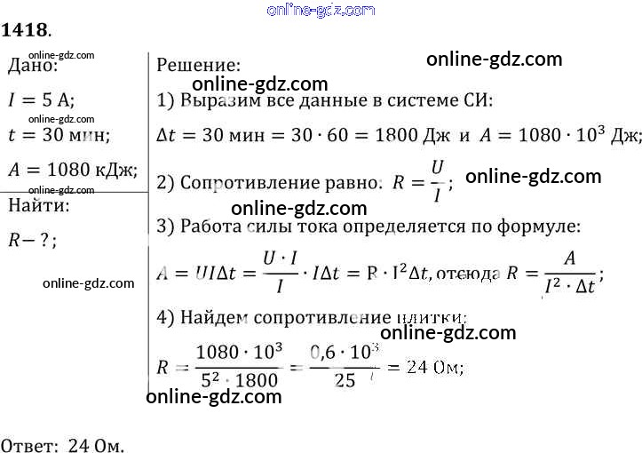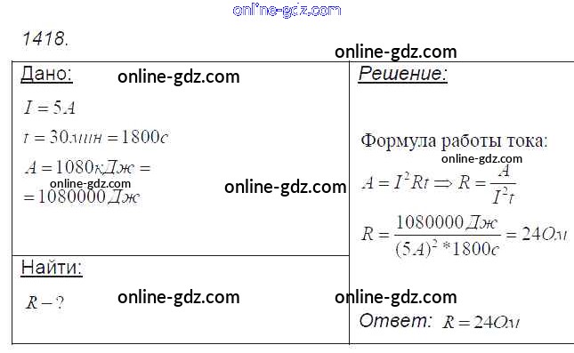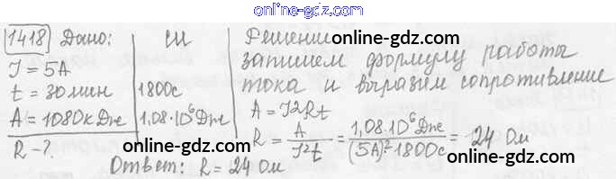 Готовые домашние задания по Физике за 7, 8, 9 класс Сборник задач Лукашик, Иванова 2011 - Задания 1418