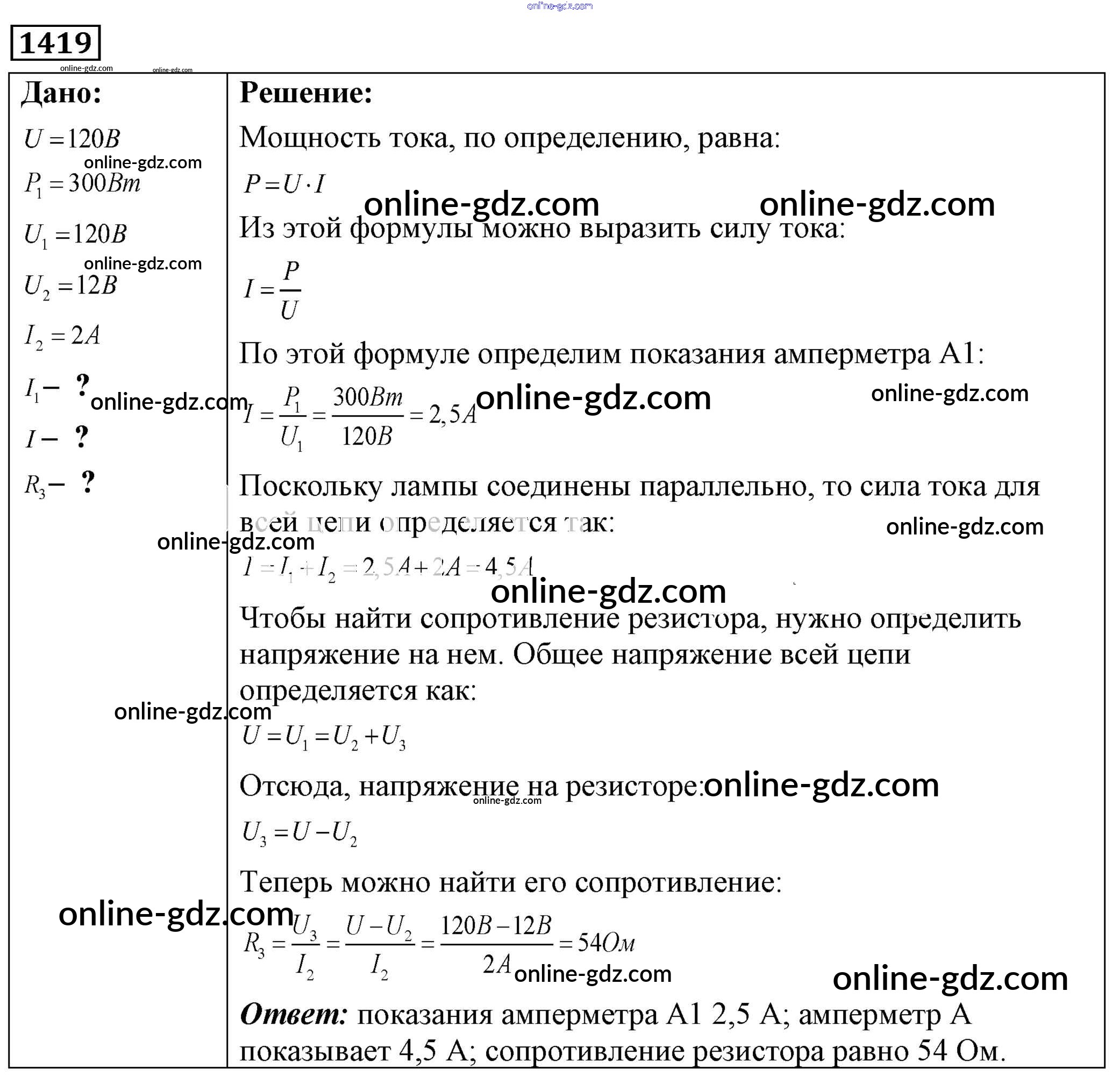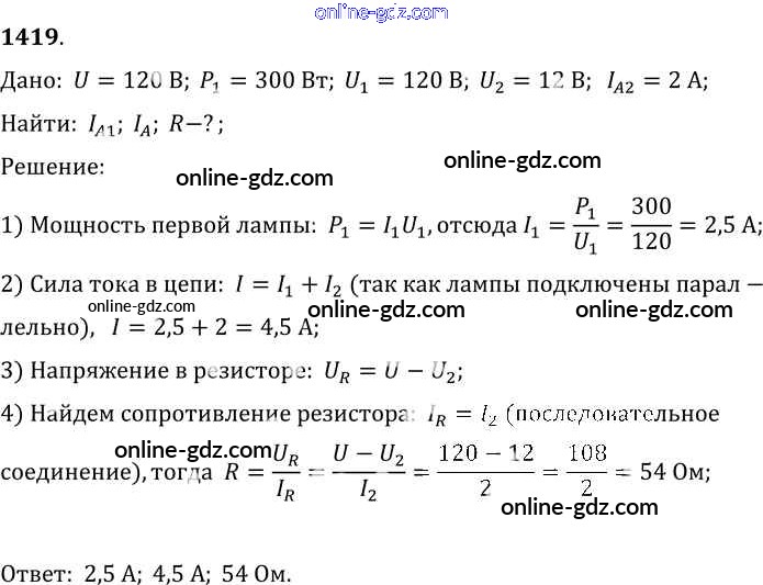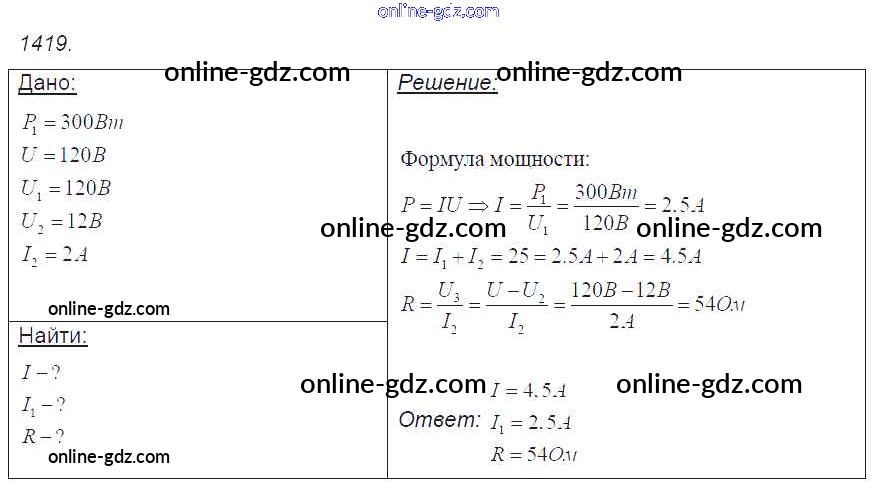 Готовые домашние задания по Физике за 7, 8, 9 класс Сборник задач Лукашик, Иванова 2011 - Задания 1419