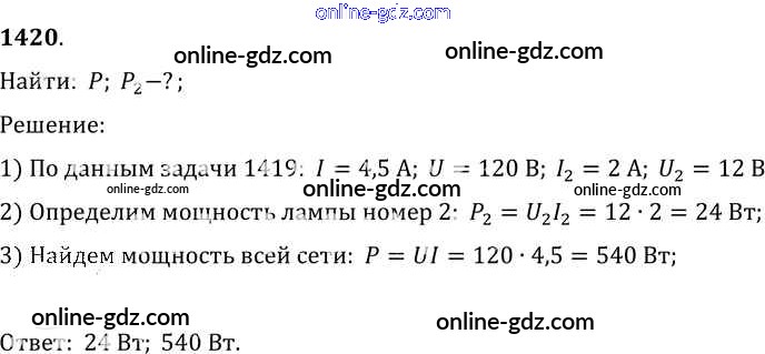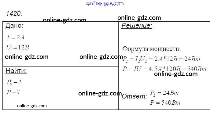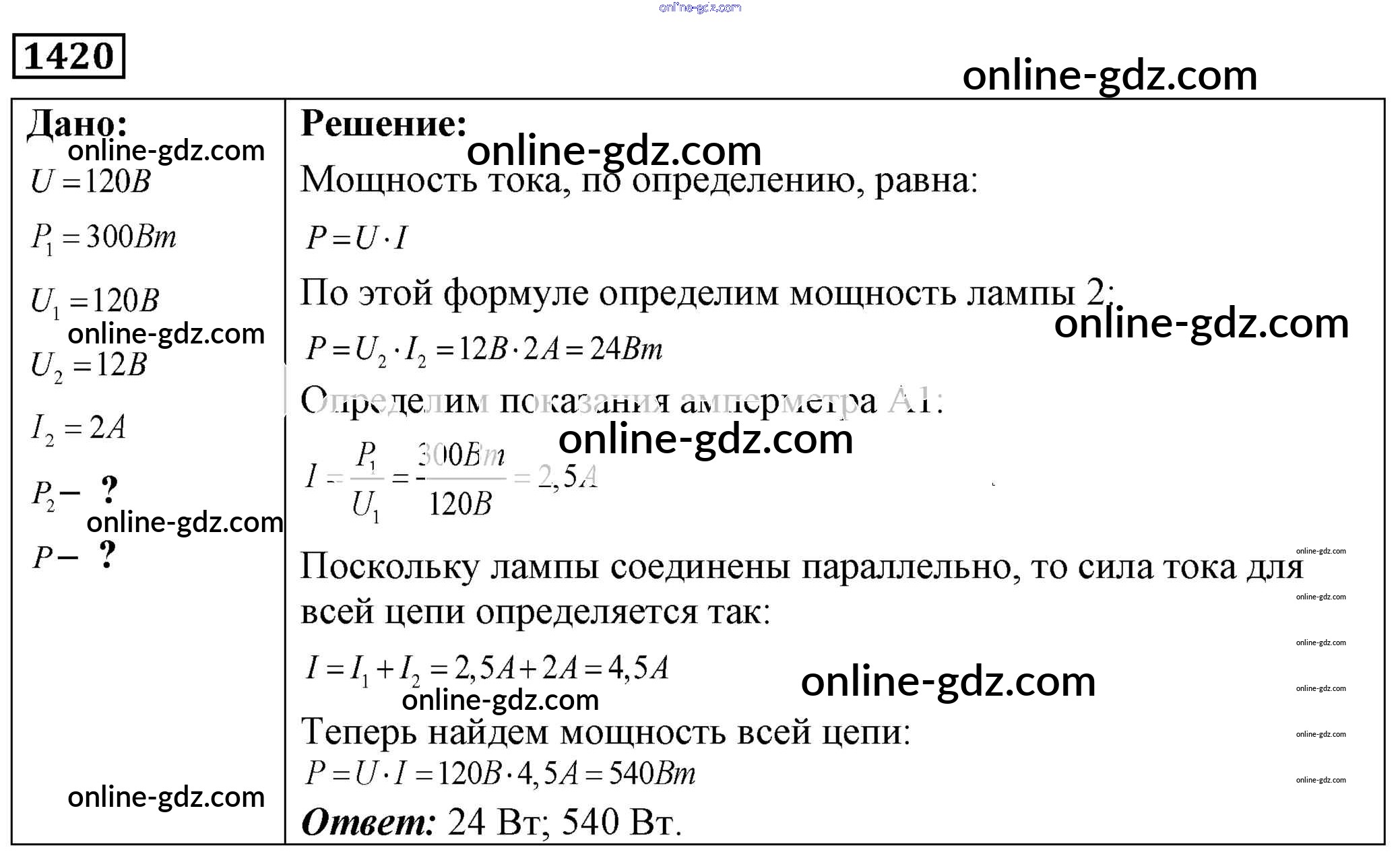 Готовые домашние задания по Физике за 7, 8, 9 класс Сборник задач Лукашик, Иванова 2011 - Задания 1420