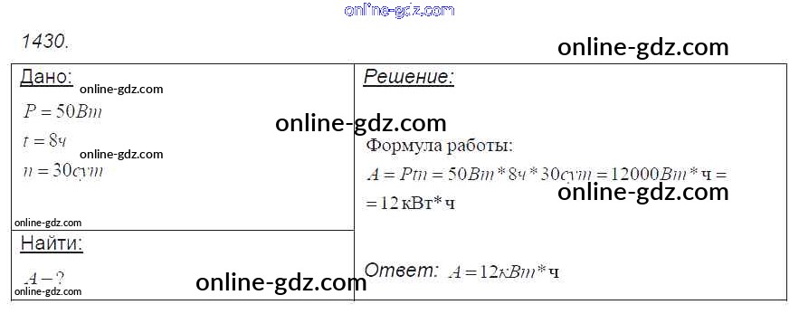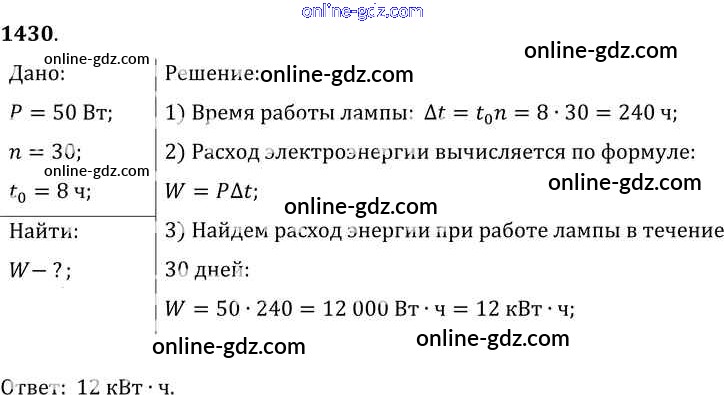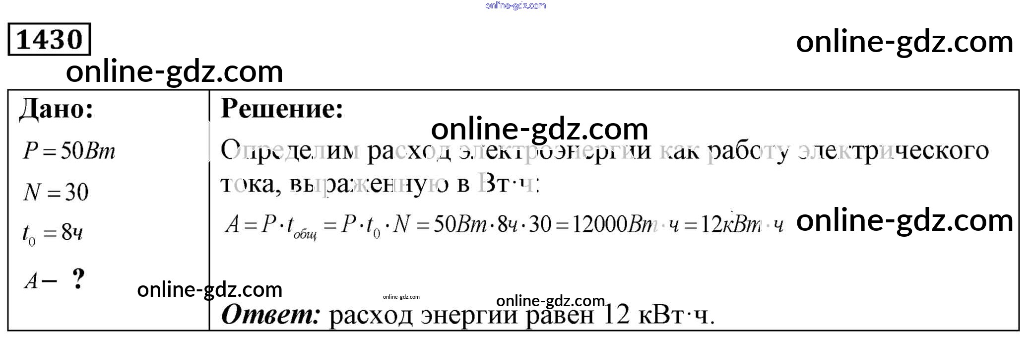 Готовые домашние задания по Физике за 7, 8, 9 класс Сборник задач Лукашик, Иванова 2011 - Задания 1430