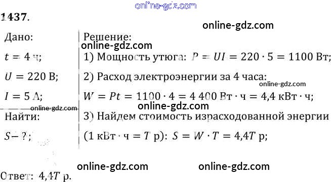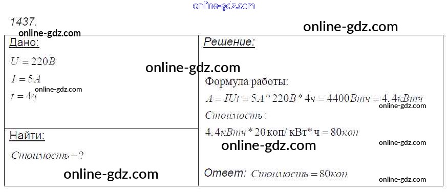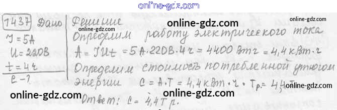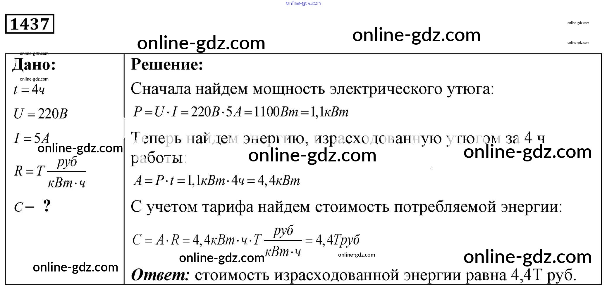 Готовые домашние задания по Физике за 7, 8, 9 класс Сборник задач Лукашик, Иванова 2011 - Задания 1437