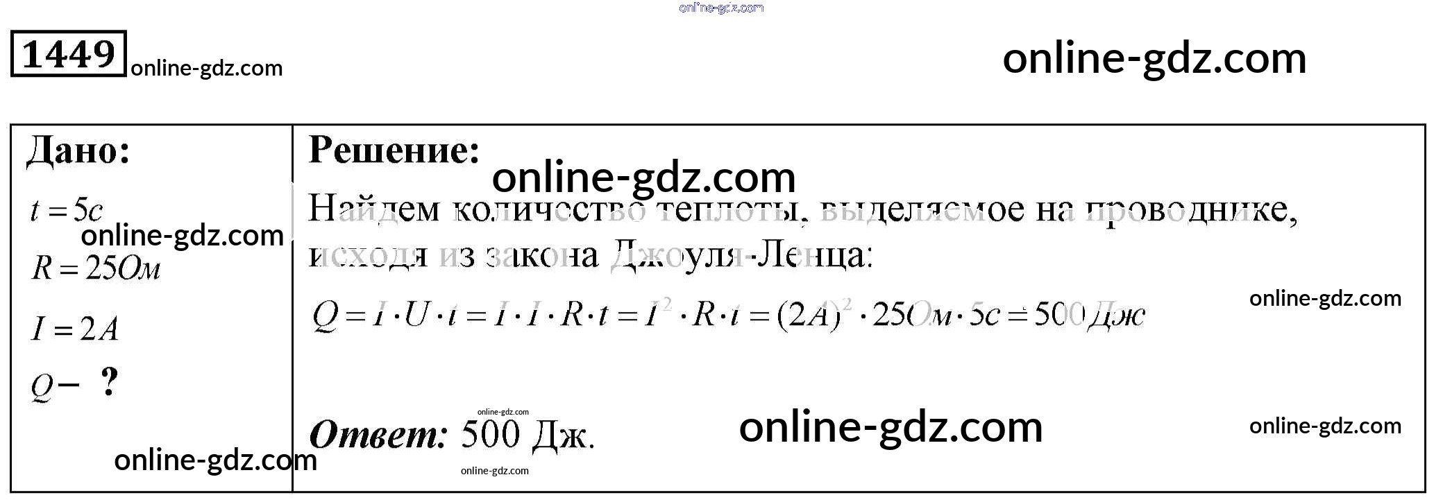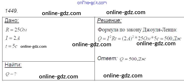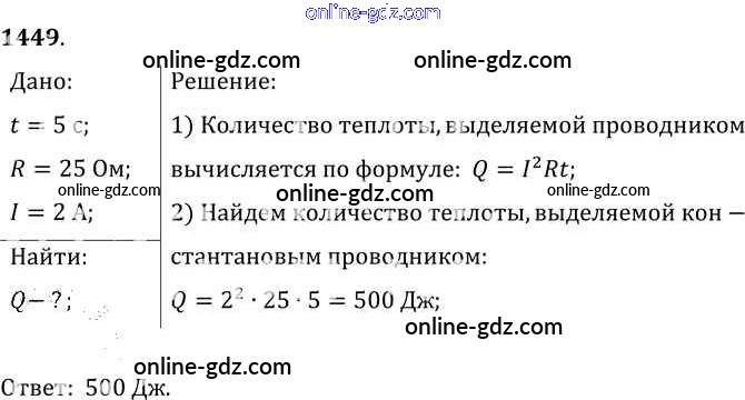 Готовые домашние задания по Физике за 7, 8, 9 класс Сборник задач Лукашик, Иванова 2011 - Задания 1449