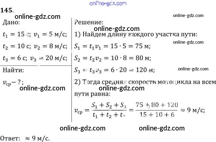 Готовые домашние задания по Физике за 7, 8, 9 класс Сборник задач Лукашик, Иванова 2011 - Задания 145