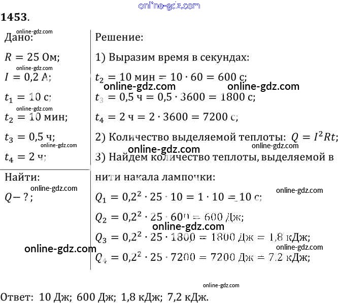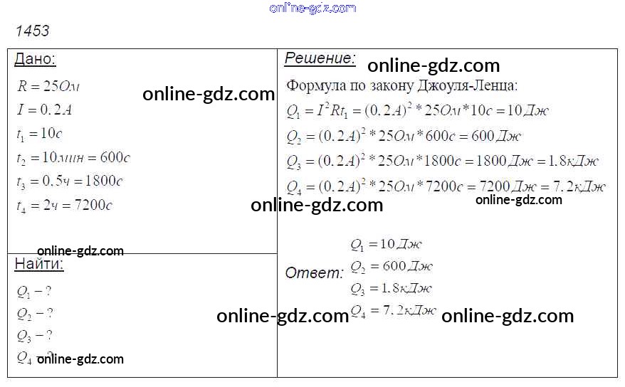 Готовые домашние задания по Физике за 7, 8, 9 класс Сборник задач Лукашик, Иванова 2011 - Задания 1453