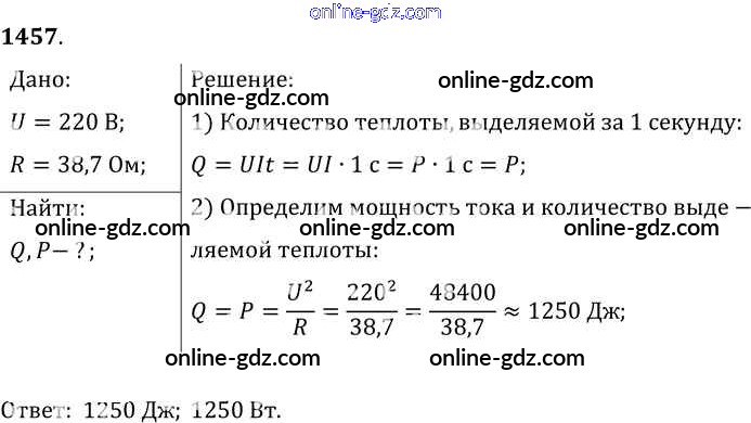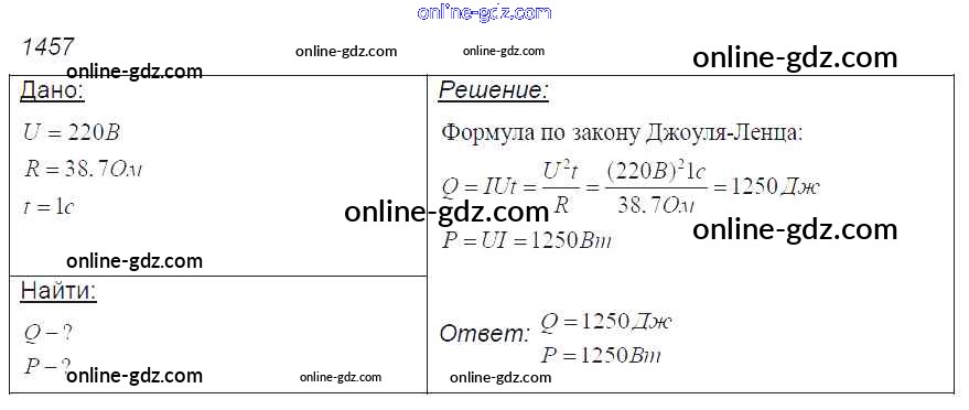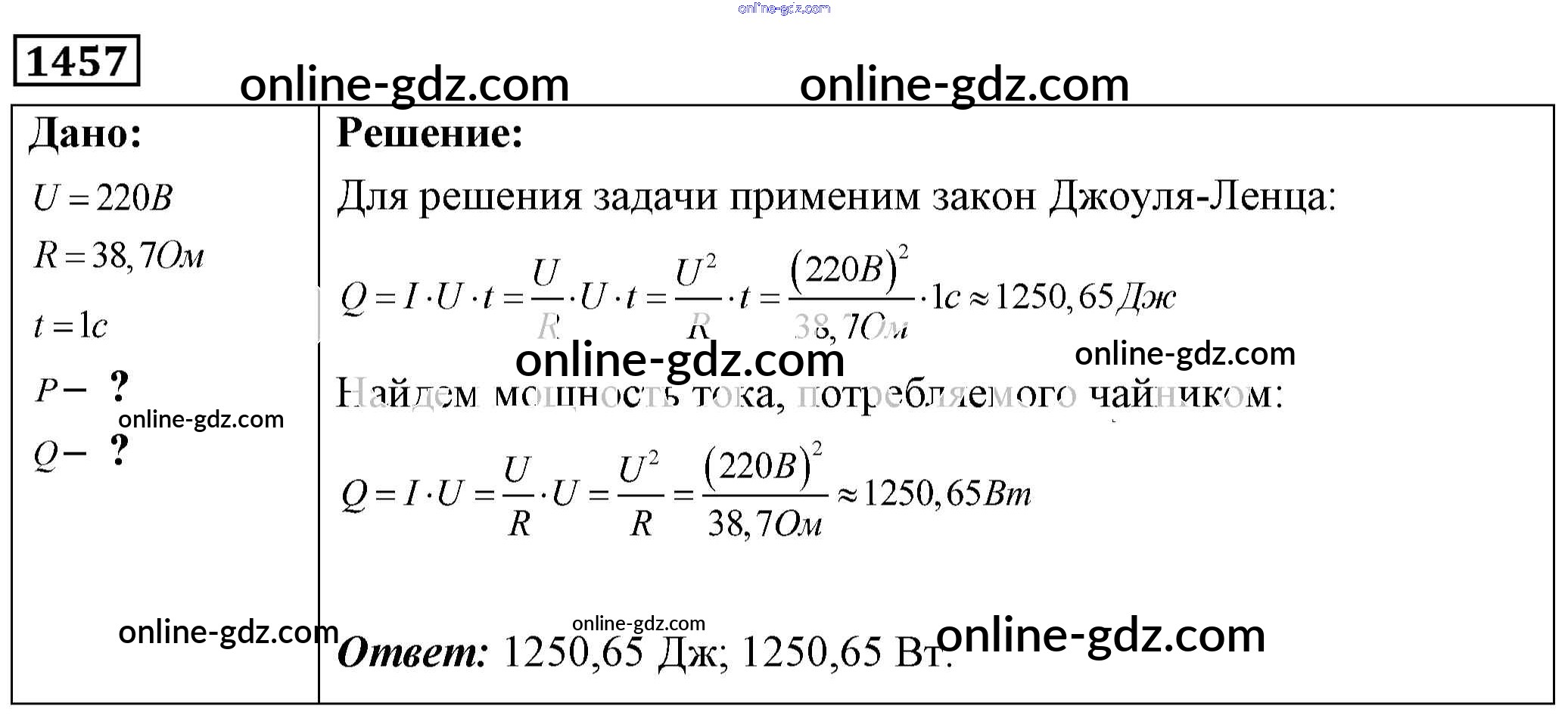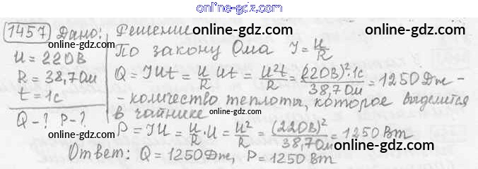 Готовые домашние задания по Физике за 7, 8, 9 класс Сборник задач Лукашик, Иванова 2011 - Задания 1457