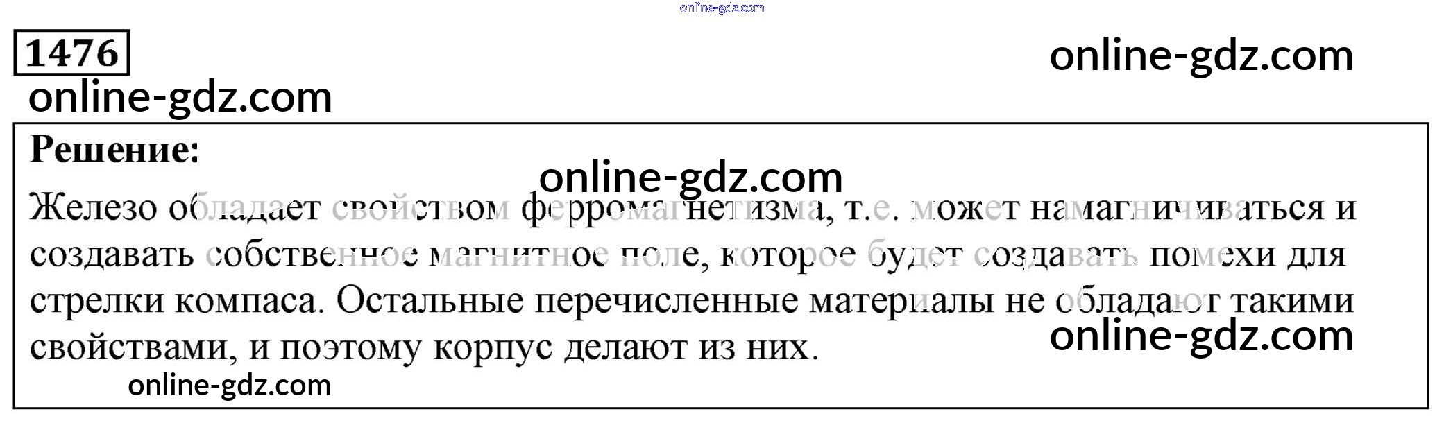 Готовые домашние задания по Физике за 7, 8, 9 класс Сборник задач Лукашик, Иванова 2011 - Задания 1476