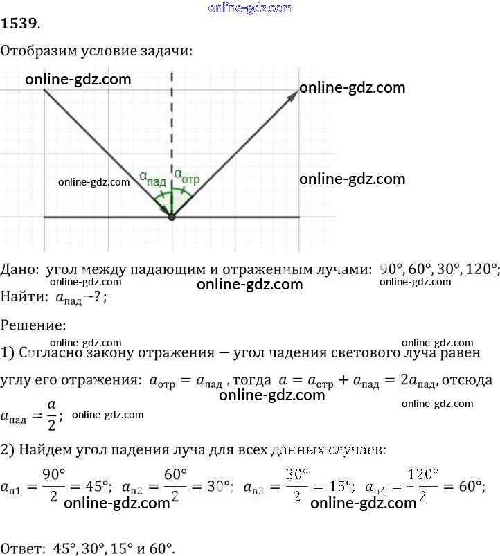 Готовые домашние задания по Физике за 7, 8, 9 класс Сборник задач Лукашик, Иванова 2011 - Задания 1539