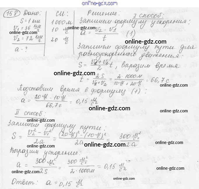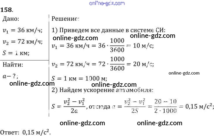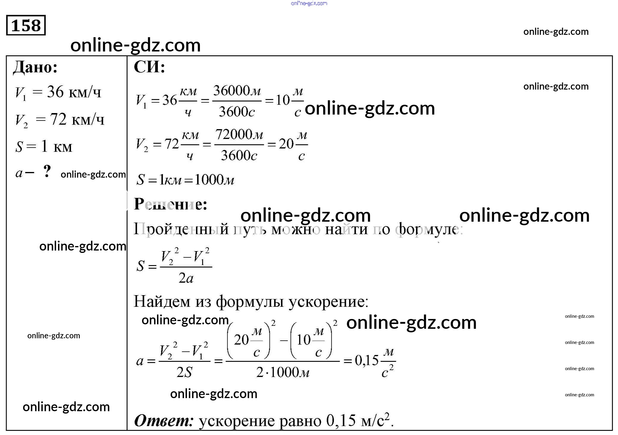 Готовые домашние задания по Физике за 7, 8, 9 класс Сборник задач Лукашик, Иванова 2011 - Задания 158