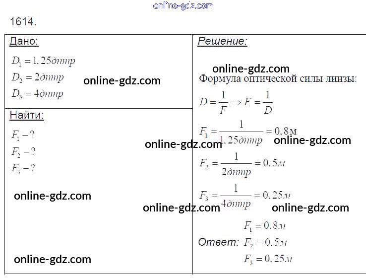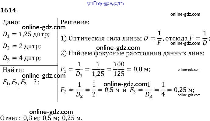 Готовые домашние задания по Физике за 7, 8, 9 класс Сборник задач Лукашик, Иванова 2011 - Задания 1614