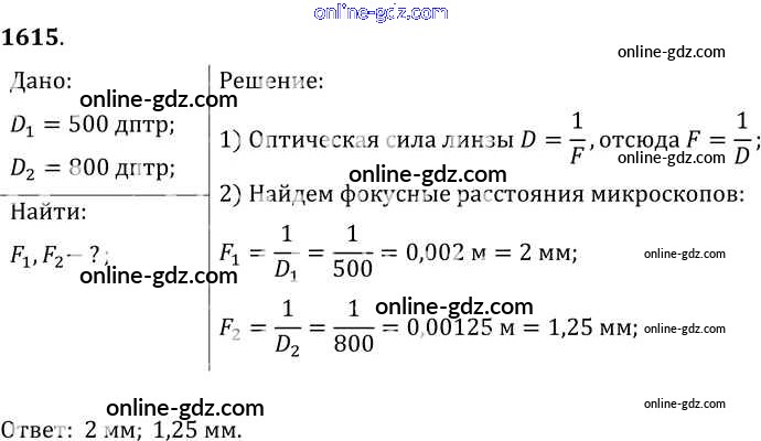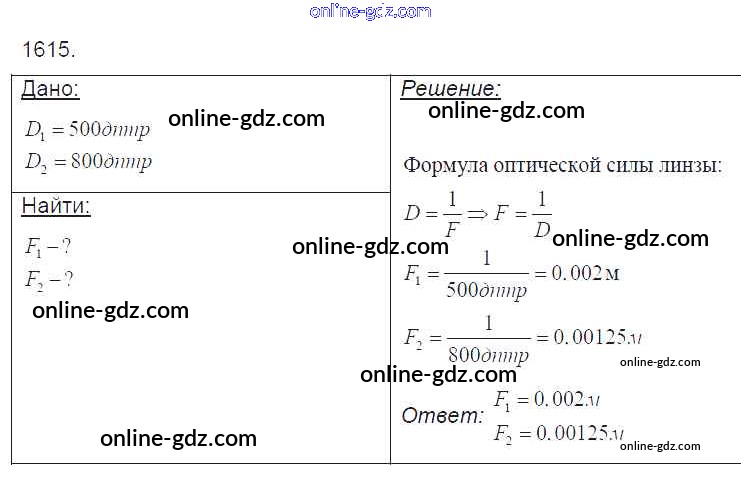 Готовые домашние задания по Физике за 7, 8, 9 класс Сборник задач Лукашик, Иванова 2011 - Задания 1615