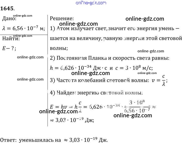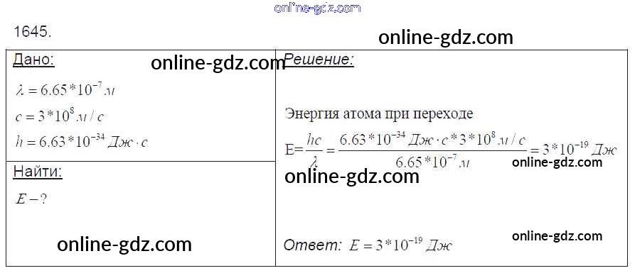 Готовые домашние задания по Физике за 7, 8, 9 класс Сборник задач Лукашик, Иванова 2011 - Задания 1645