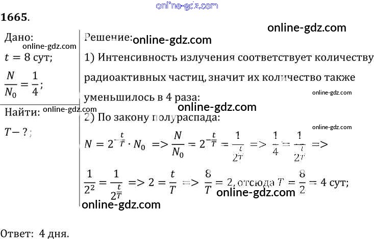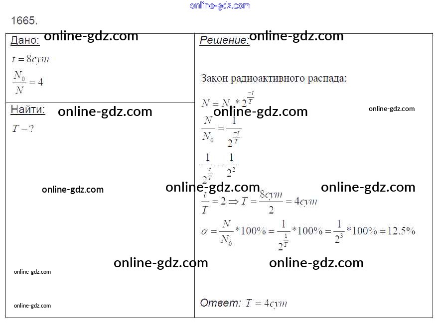 Готовые домашние задания по Физике за 7, 8, 9 класс Сборник задач Лукашик, Иванова 2011 - Задания 1665