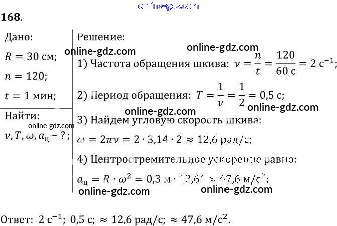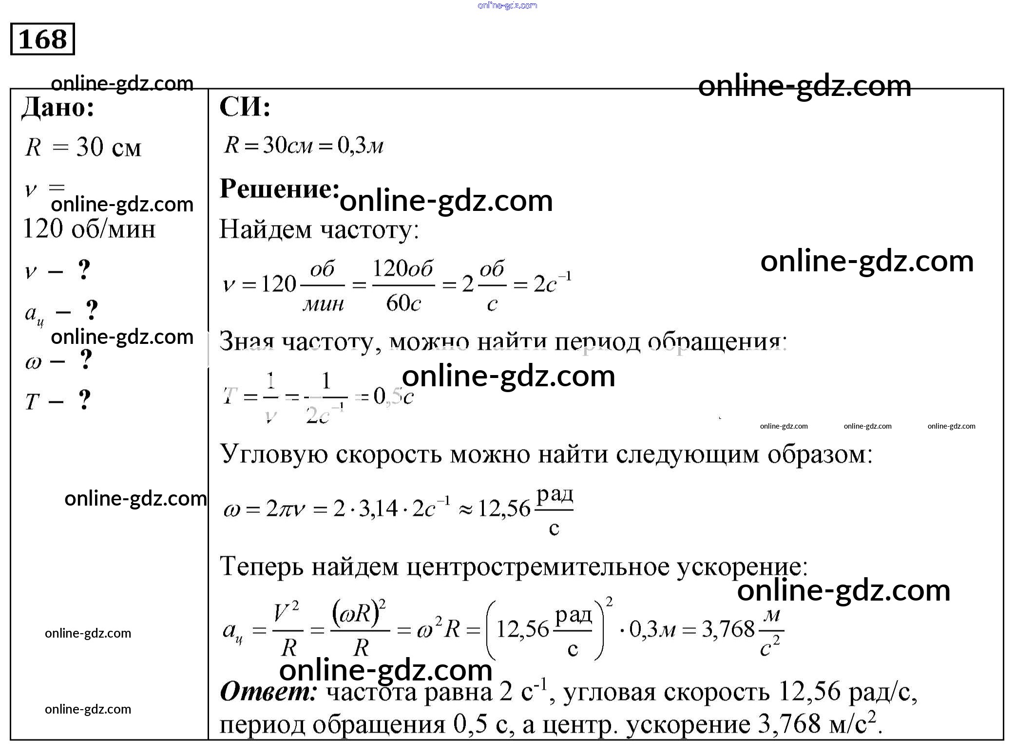 Готовые домашние задания по Физике за 7, 8, 9 класс Сборник задач Лукашик, Иванова 2011 - Задания 168