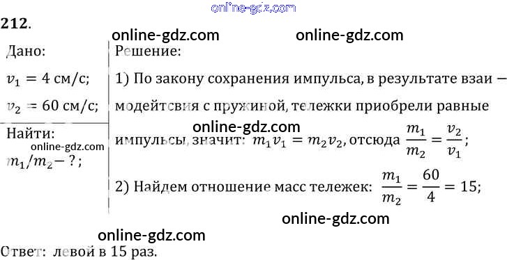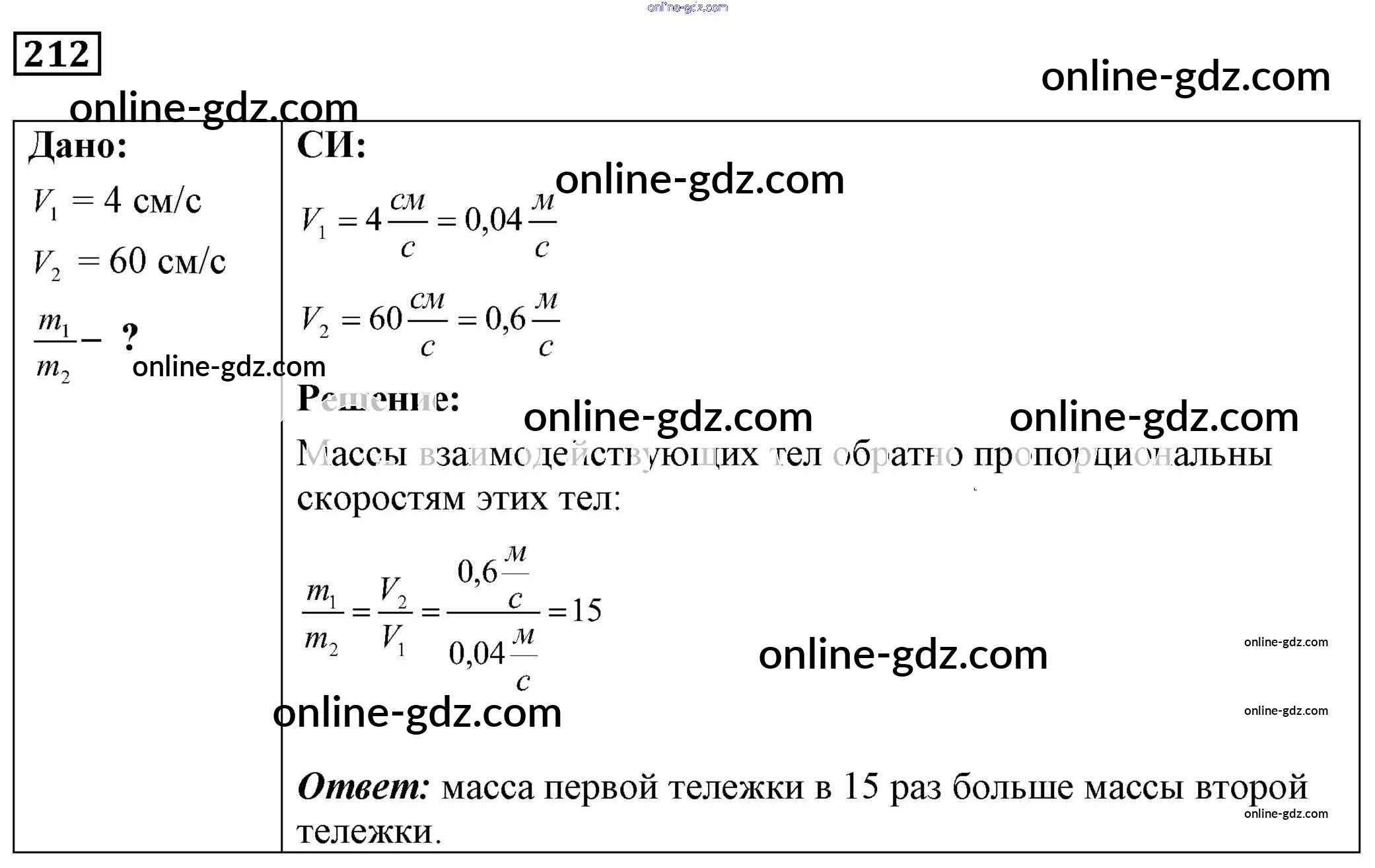 Готовые домашние задания по Физике за 7, 8, 9 класс Сборник задач Лукашик, Иванова 2011 - Задания 212