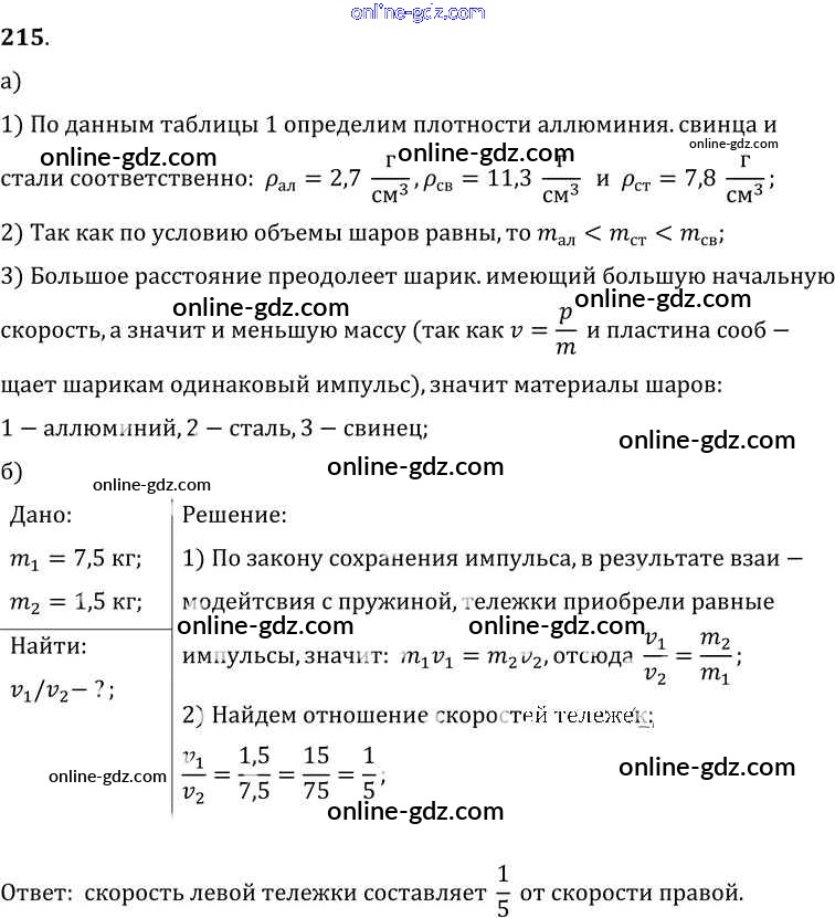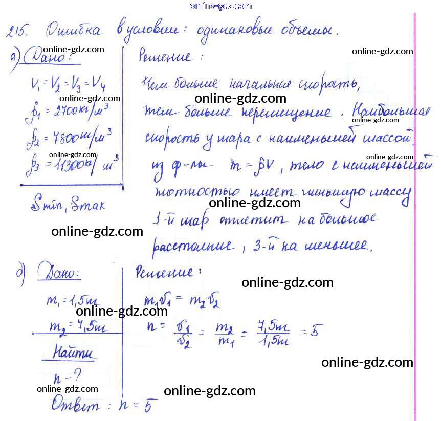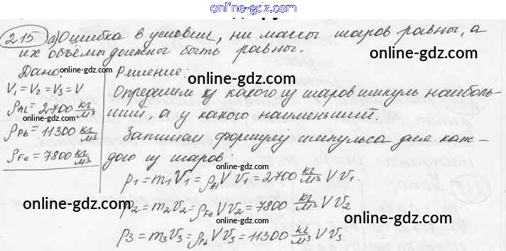 Готовые домашние задания по Физике за 7, 8, 9 класс Сборник задач Лукашик, Иванова 2011 - Задания 215