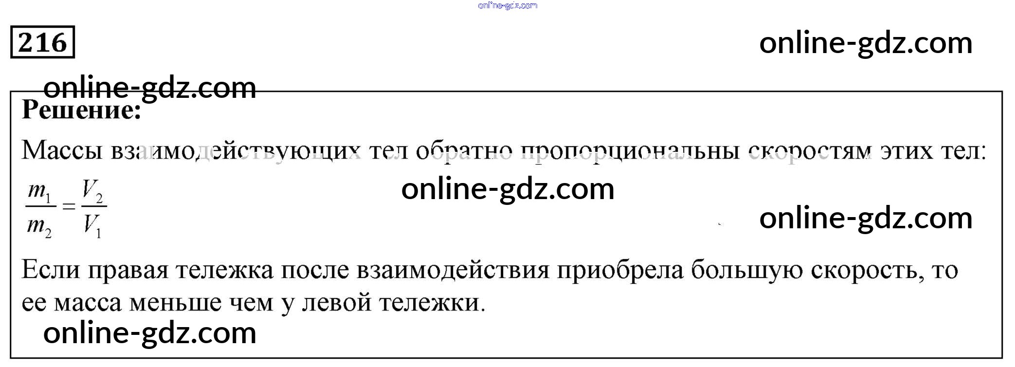 Готовые домашние задания по Физике за 7, 8, 9 класс Сборник задач Лукашик, Иванова 2011 - Задания 216