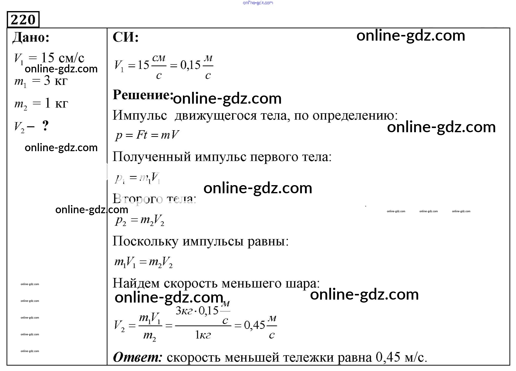 Готовые домашние задания по Физике за 7, 8, 9 класс Сборник задач Лукашик, Иванова 2011 - Задания 220