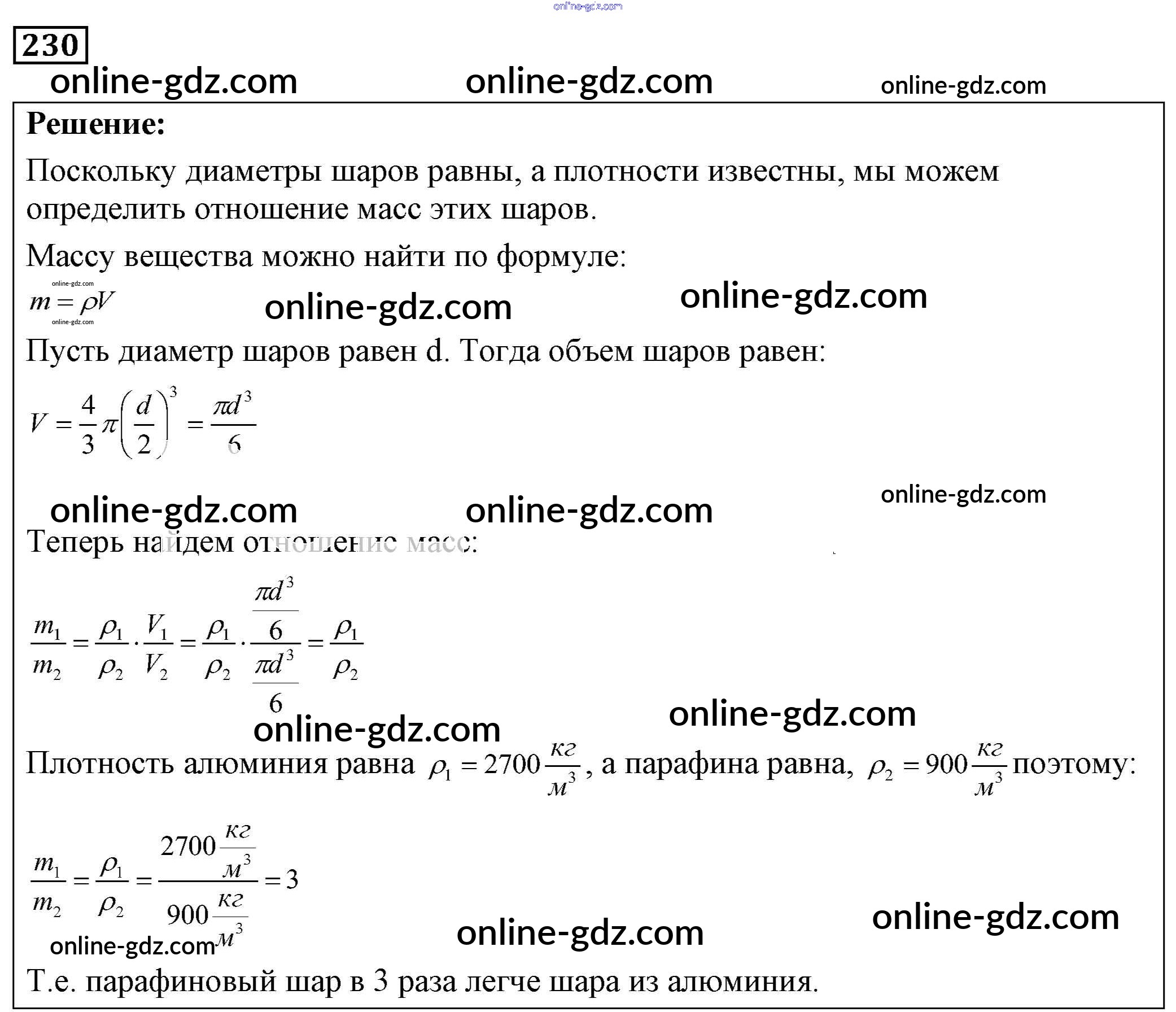 Готовые домашние задания по Физике за 7, 8, 9 класс Сборник задач Лукашик, Иванова 2011 - Задания 230
