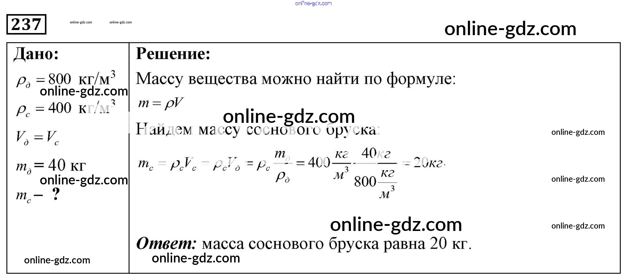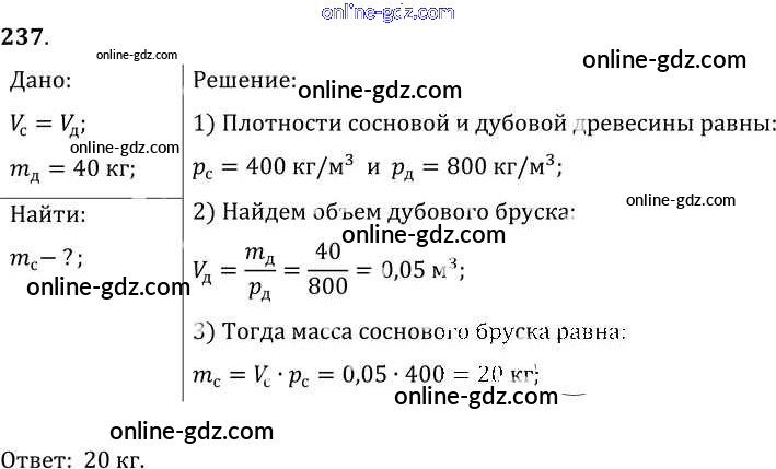 Готовые домашние задания по Физике за 7, 8, 9 класс Сборник задач Лукашик, Иванова 2011 - Задания 237