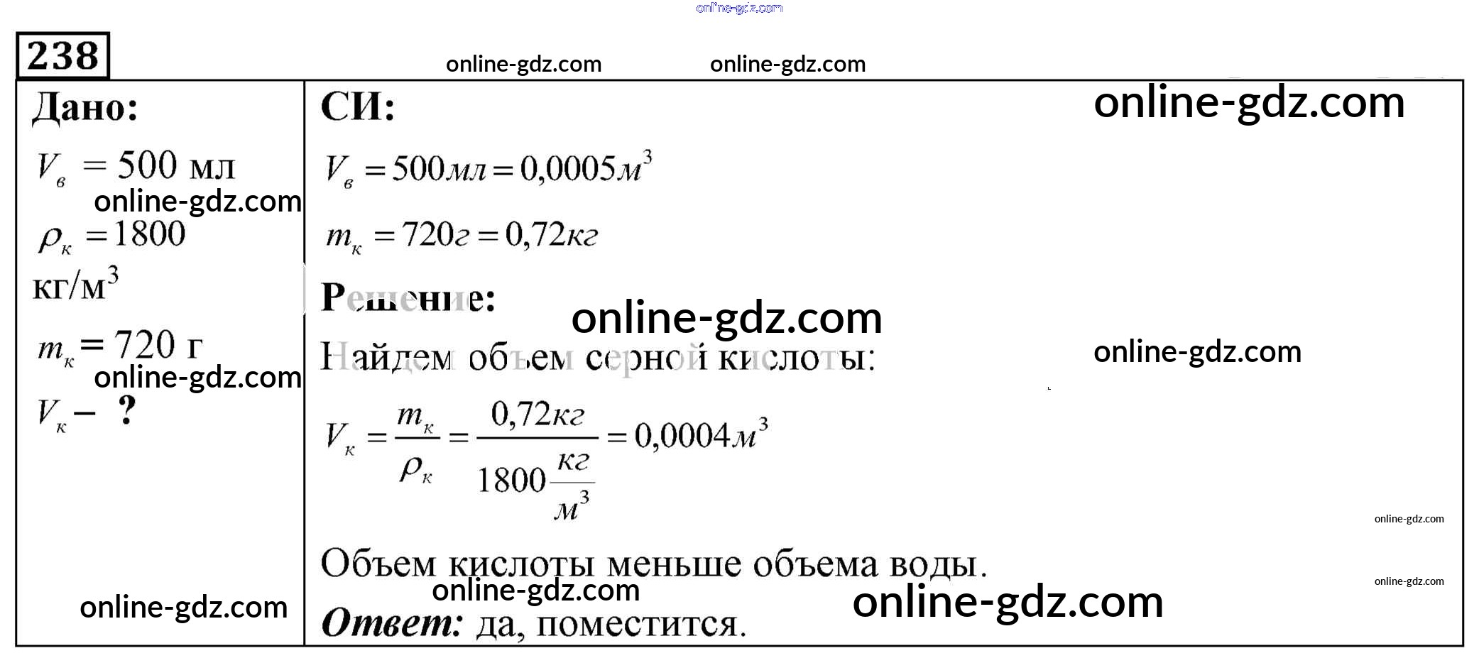 Готовые домашние задания по Физике за 7, 8, 9 класс Сборник задач Лукашик, Иванова 2011 - Задания 238